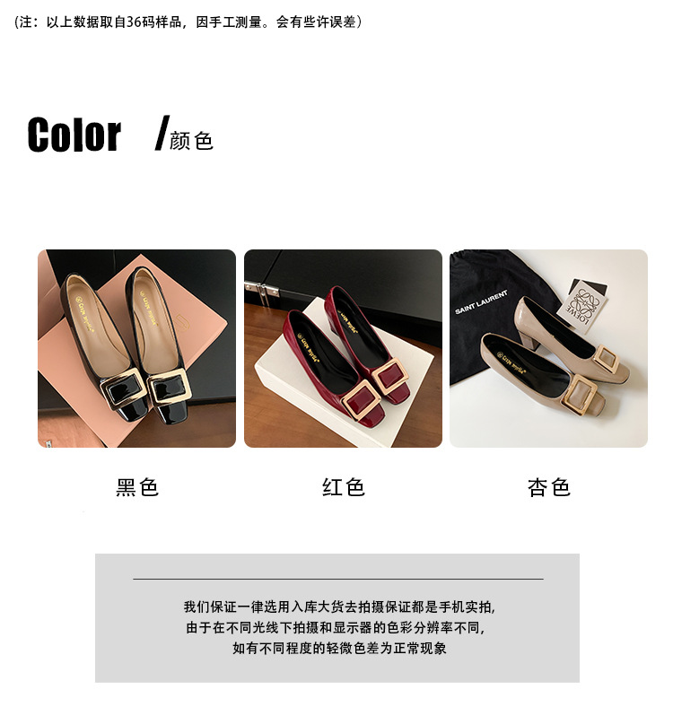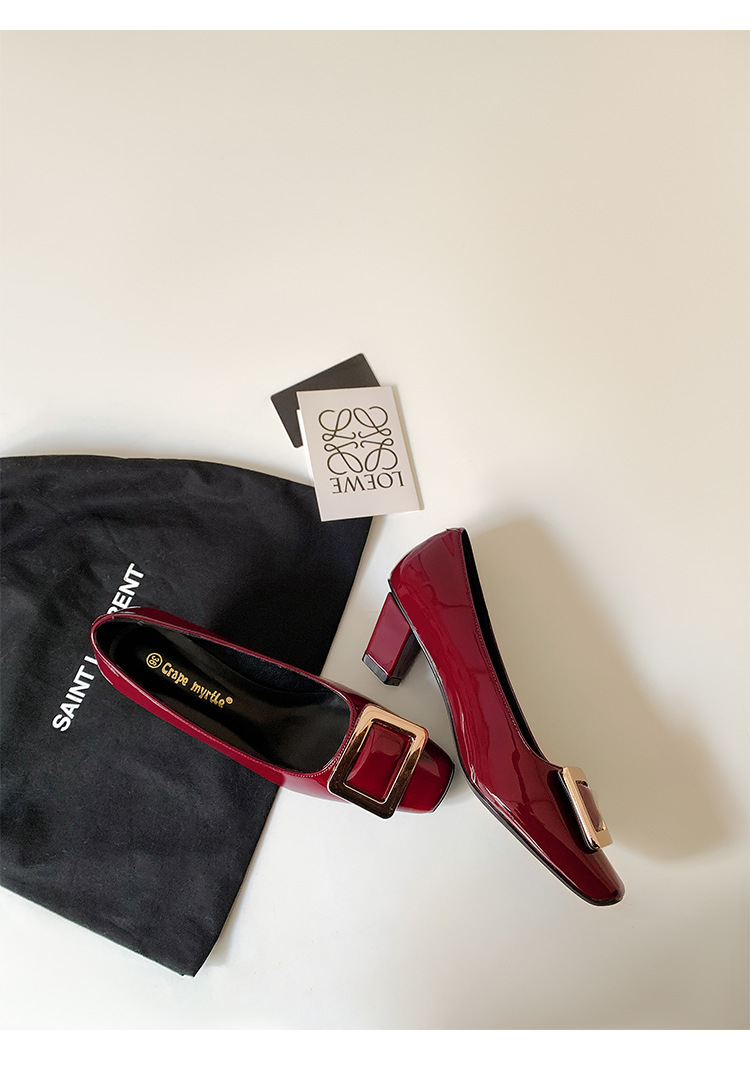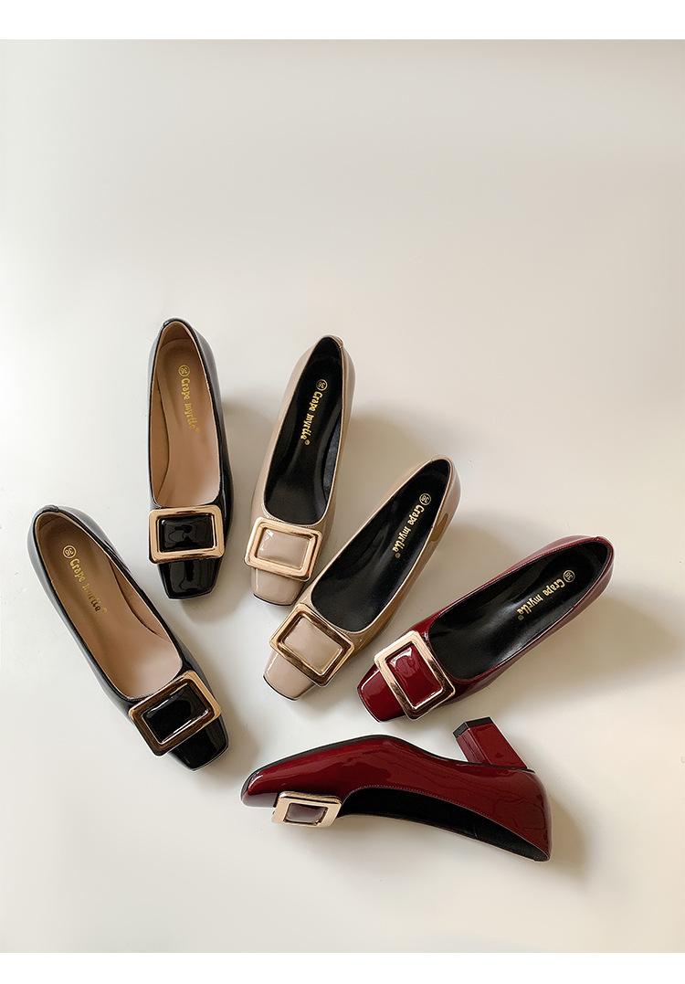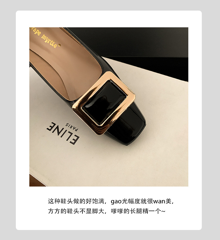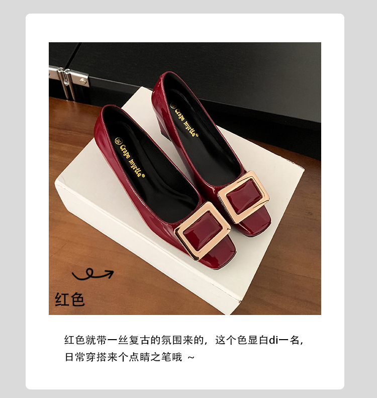 인터넷 축하 같은 광장 머리 광장 버클 얕은 입 두꺼운 하이힐 싱글 레이어 신발 여성의 2025 봄과 가을 웨딩 신발스토어 가기