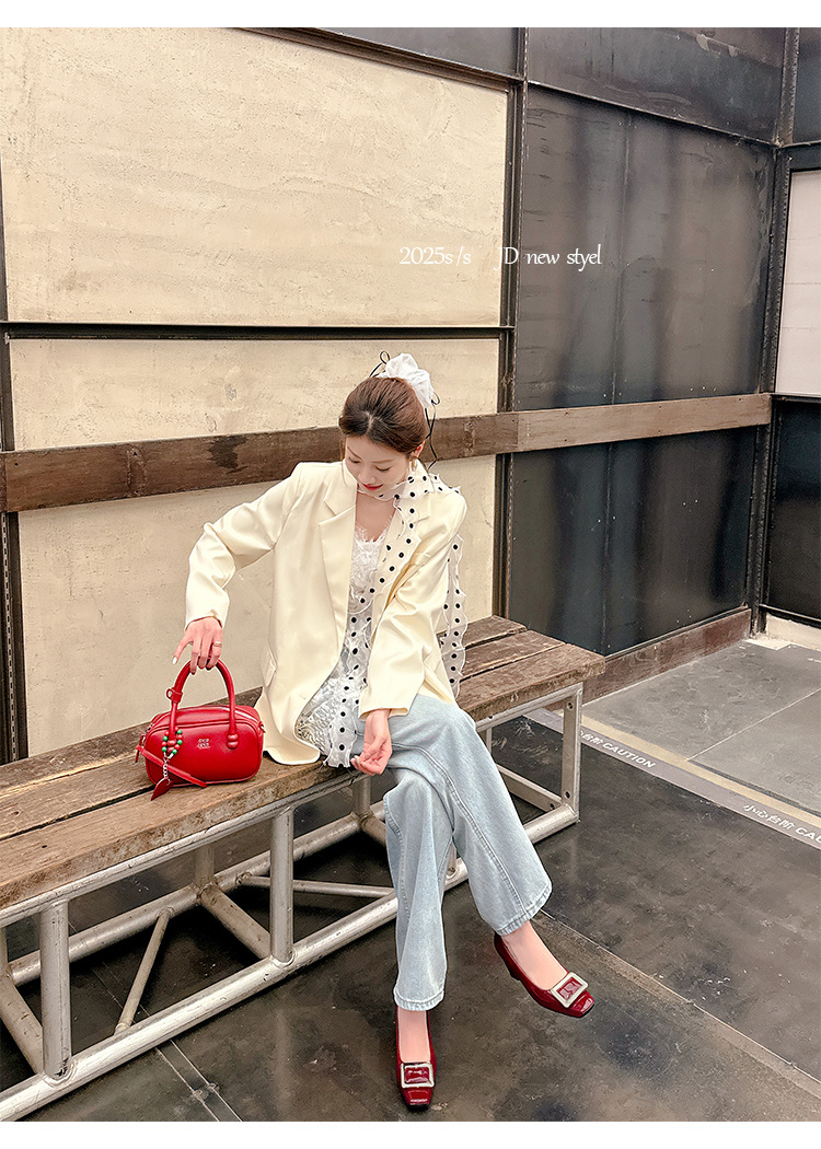 인터넷 축하 같은 광장 머리 광장 버클 얕은 입 두꺼운 하이힐 싱글 레이어 신발 여성의 2025 봄과 가을 웨딩 신발