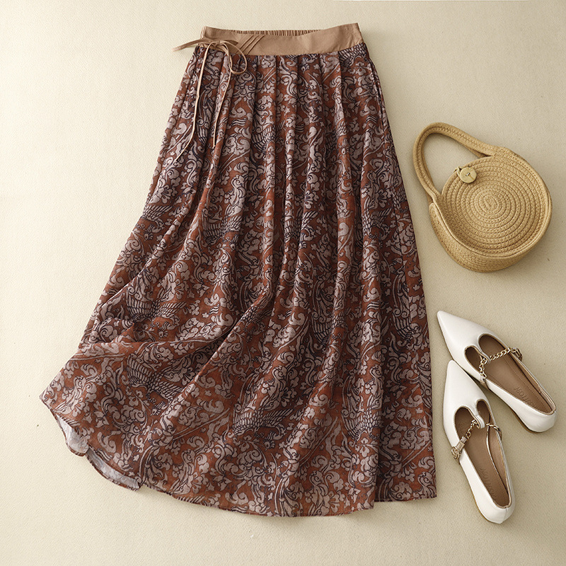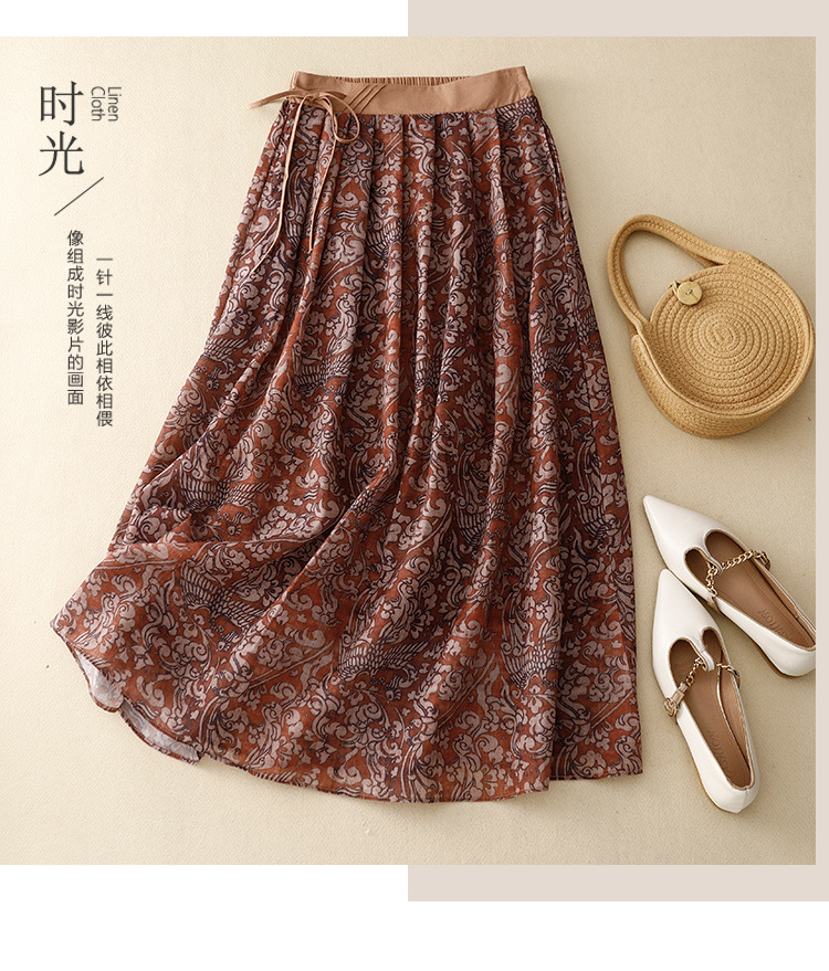 첫 번째 라인 브랜드 쇼핑몰, 내각 여름 새로운 중국 스타일 꽃 서양식 중간 길이 A 라인 하이 허리 스커트 여성 철수스토어 가기