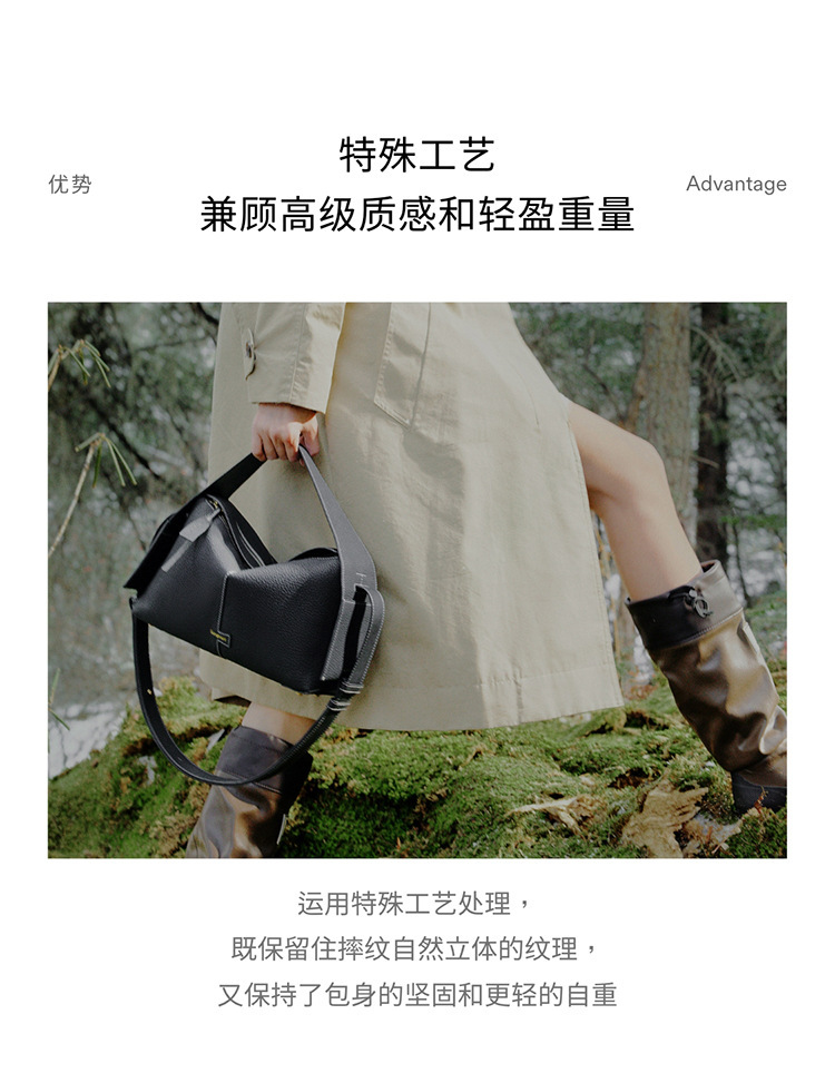Songmont挂耳系列屋檐包设计师新款头层牛皮通勤手提斜挎hobo包
