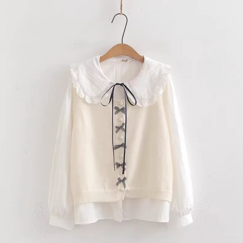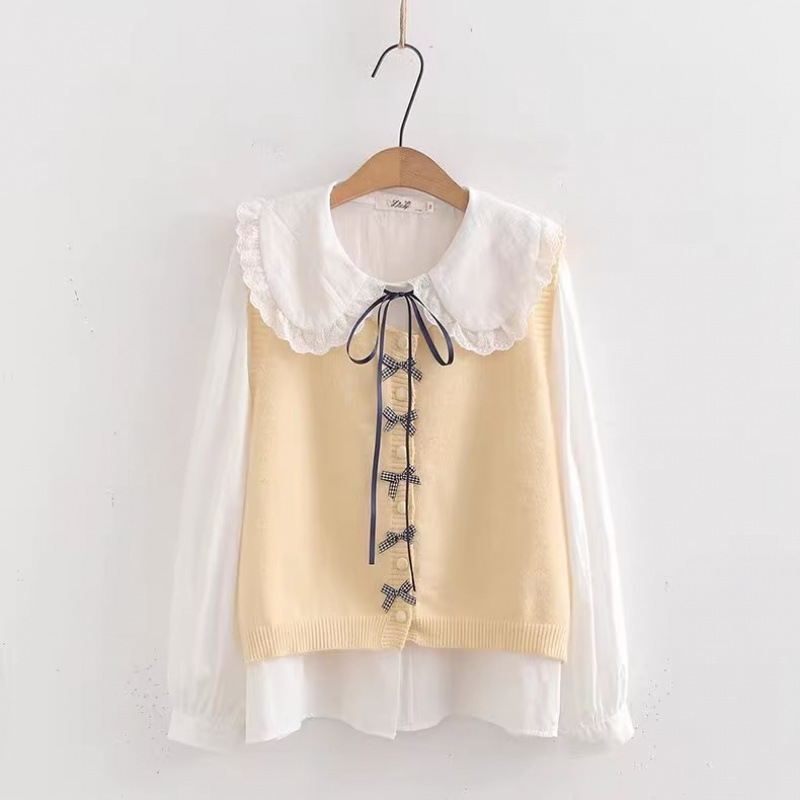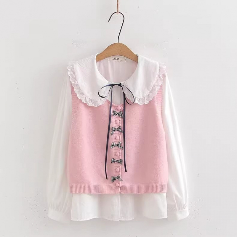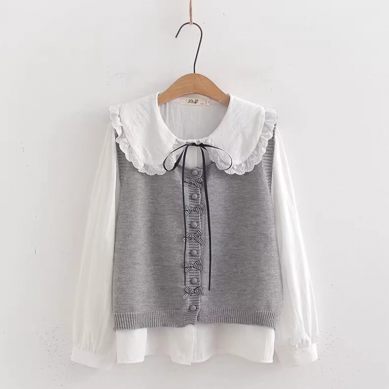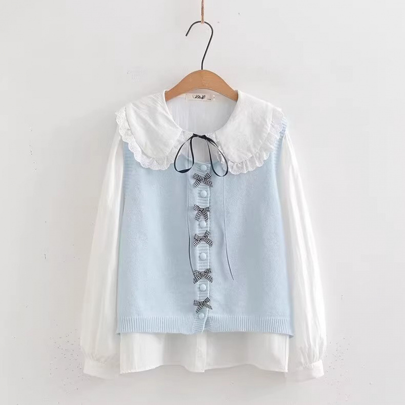 소녀의 달콤한 인형 칼라 셔츠 쌓인 조끼 투피스 2025 봄 새 중학교 고등학생 셔츠스토어 가기