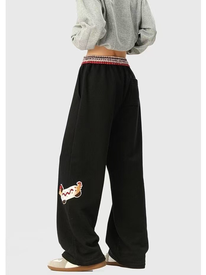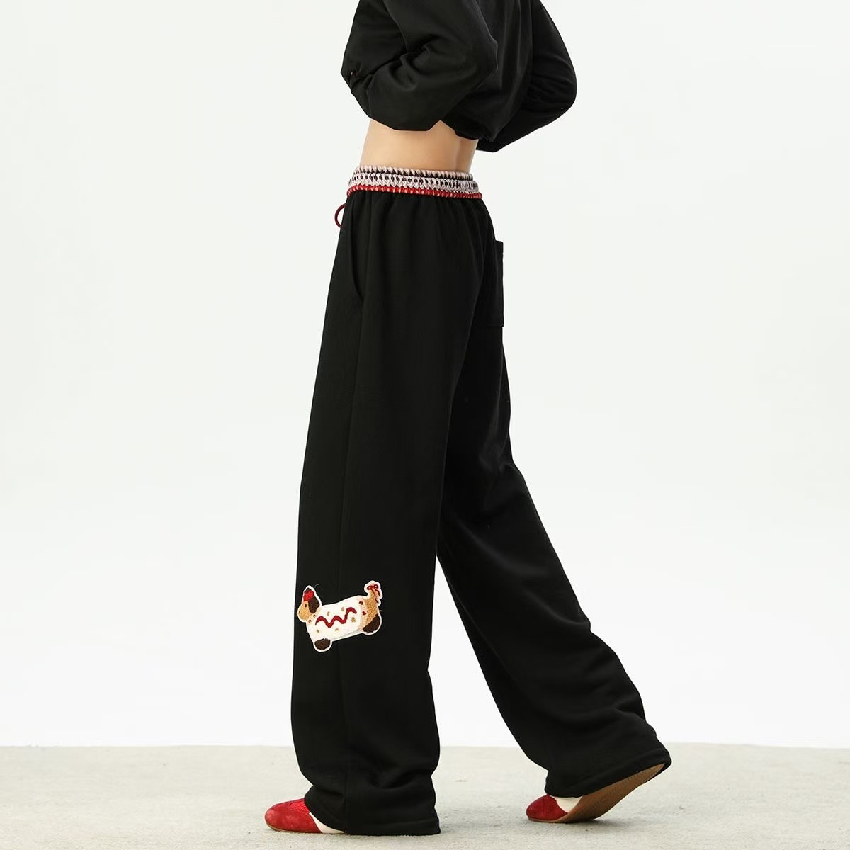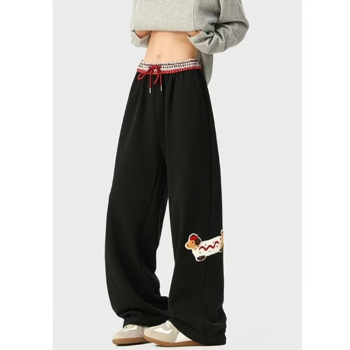 흰 꽃 회색 허리 바느질 Wachshund 개 바지 남자 2025 년 여름 새로운 틈새 디자인 감각 느슨한 넓은 다리 바지