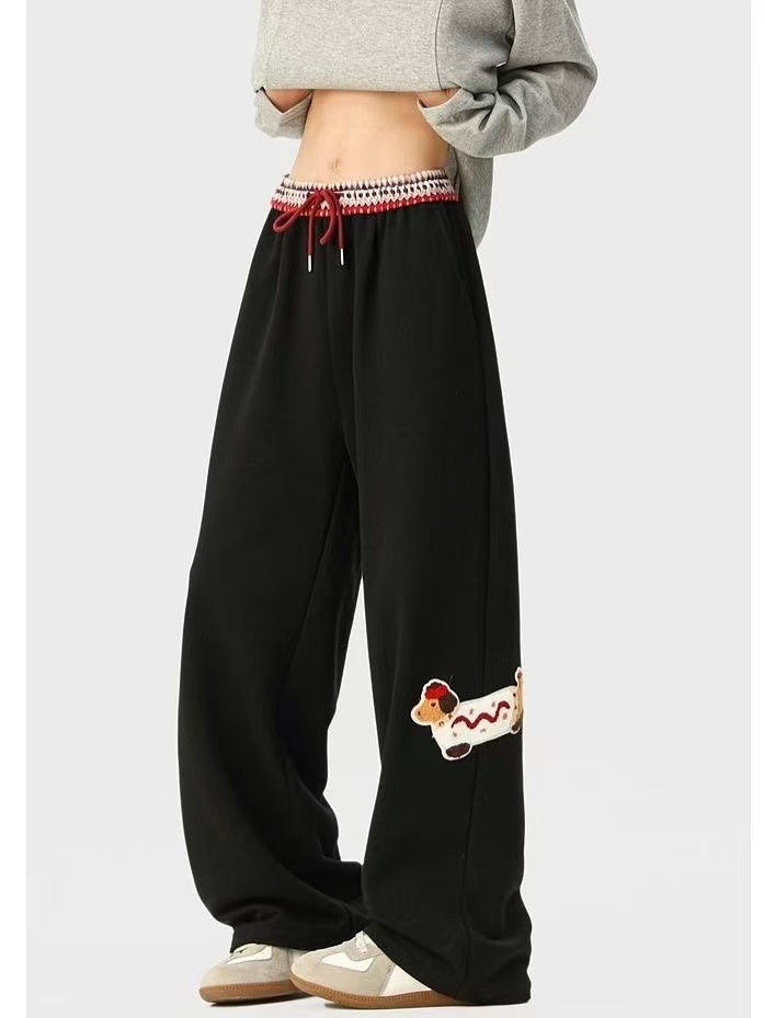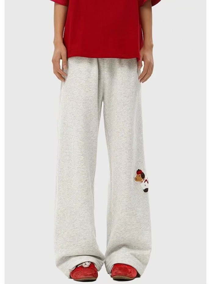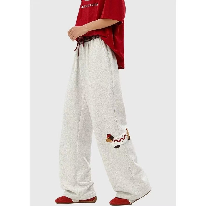 흰 꽃 회색 허리 바느질 Wachshund 개 바지 남자 2025 년 여름 새로운 틈새 디자인 감각 느슨한 넓은 다리 바지스토어 가기
