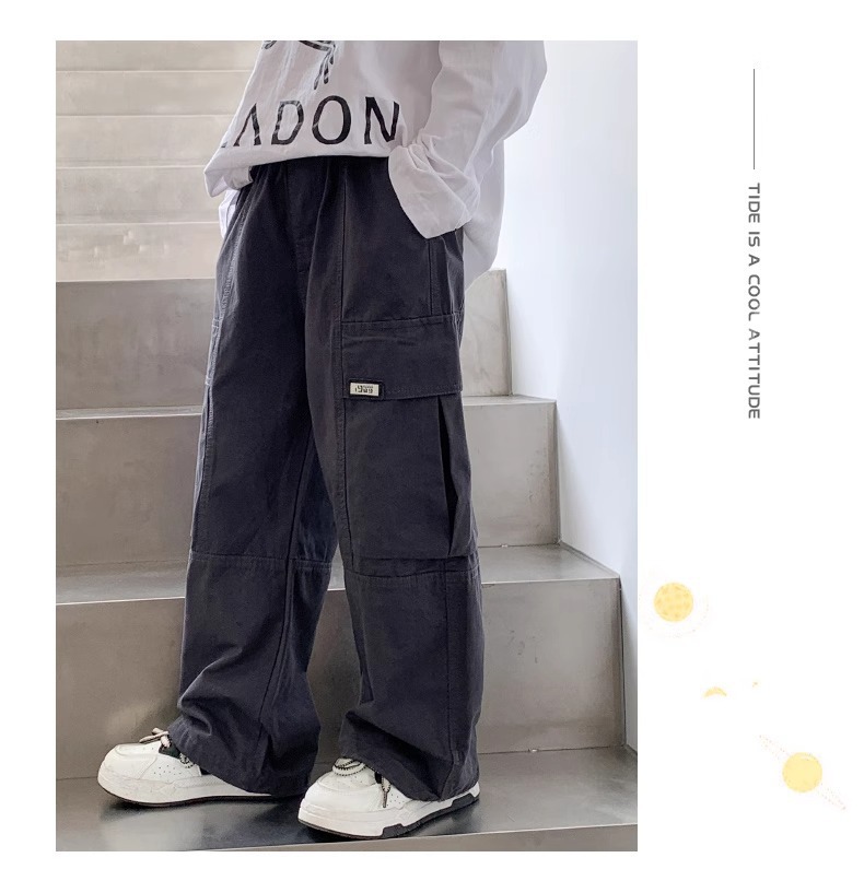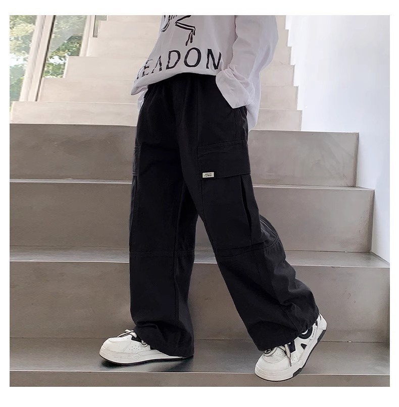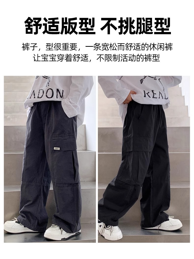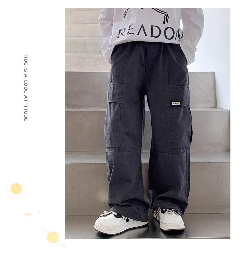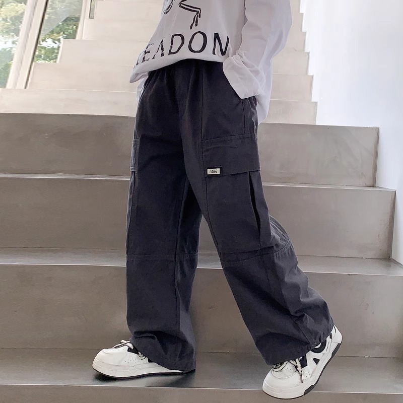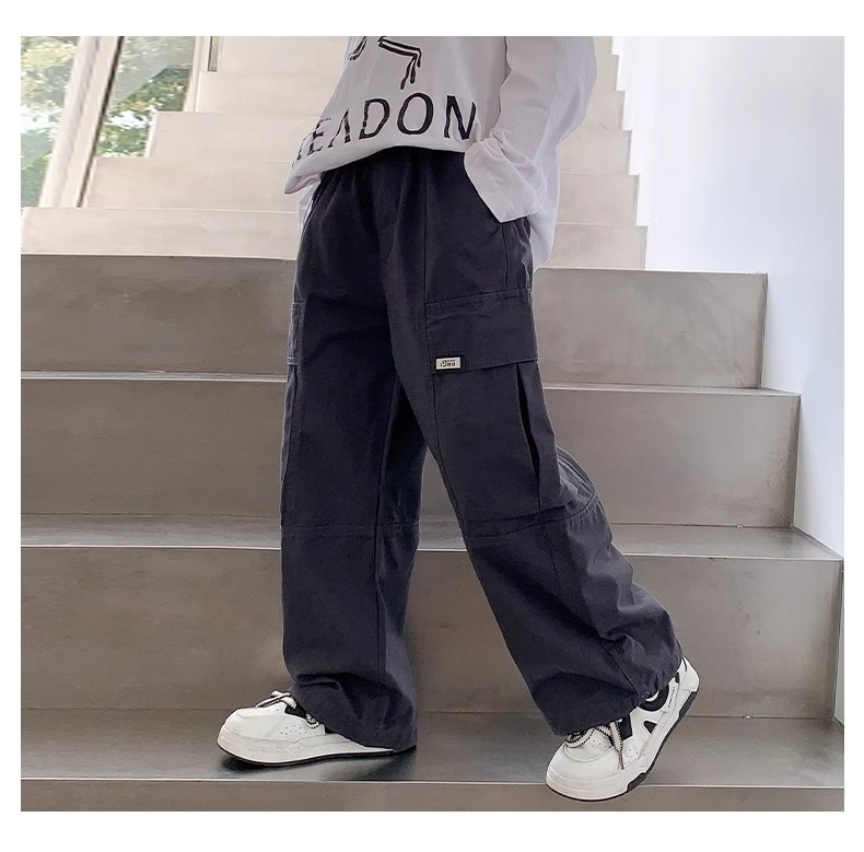 소년 면 2025 새로운 캐주얼 바지 봄과 가을 중다 어린이 튀김 거리 크레인 바지 아동복 봄 바지스토어 가기