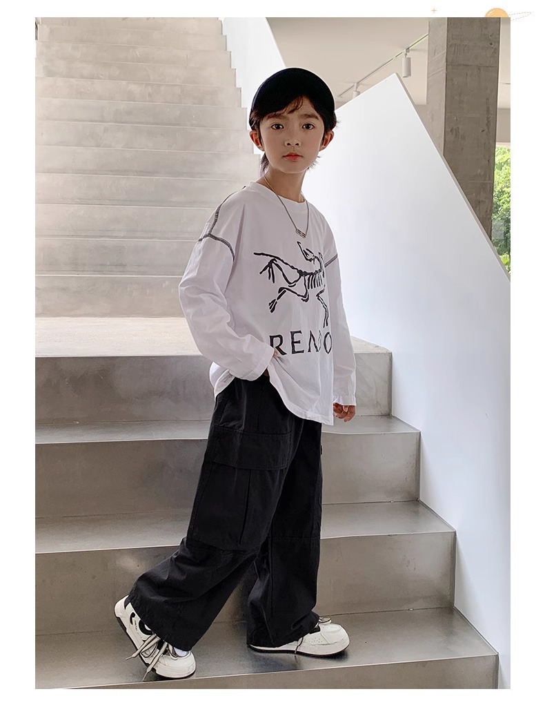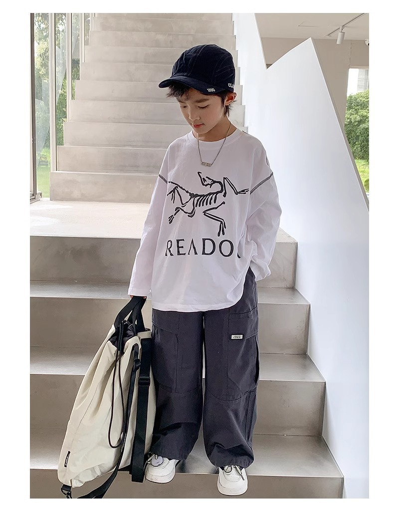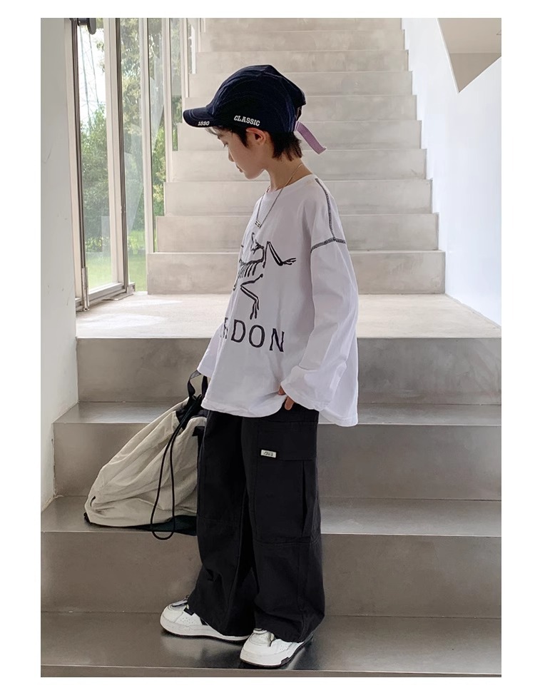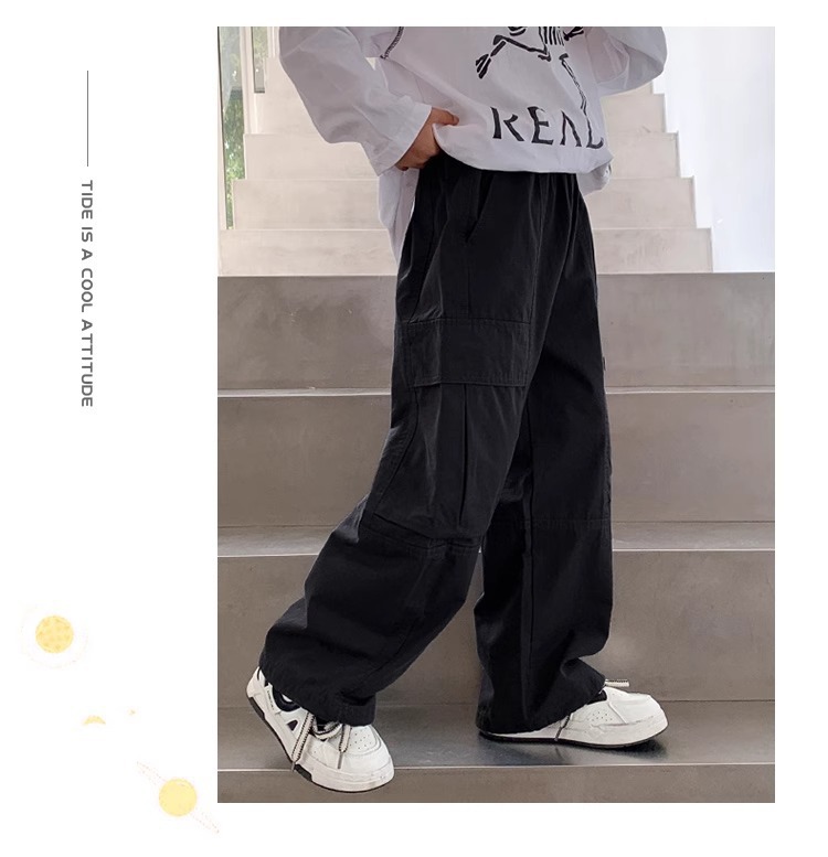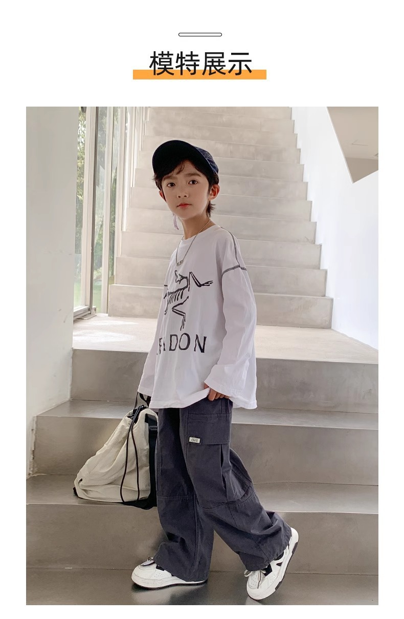 소년 면 2025 새로운 캐주얼 바지 봄과 가을 중다 어린이 튀김 거리 크레인 바지 아동복 봄 바지스토어 가기
