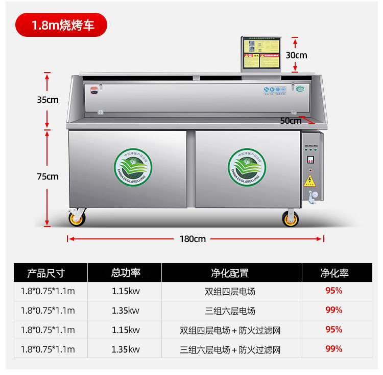 • 1.8m 바비큐 카트 + 볶음밥 일체형 정화 2550