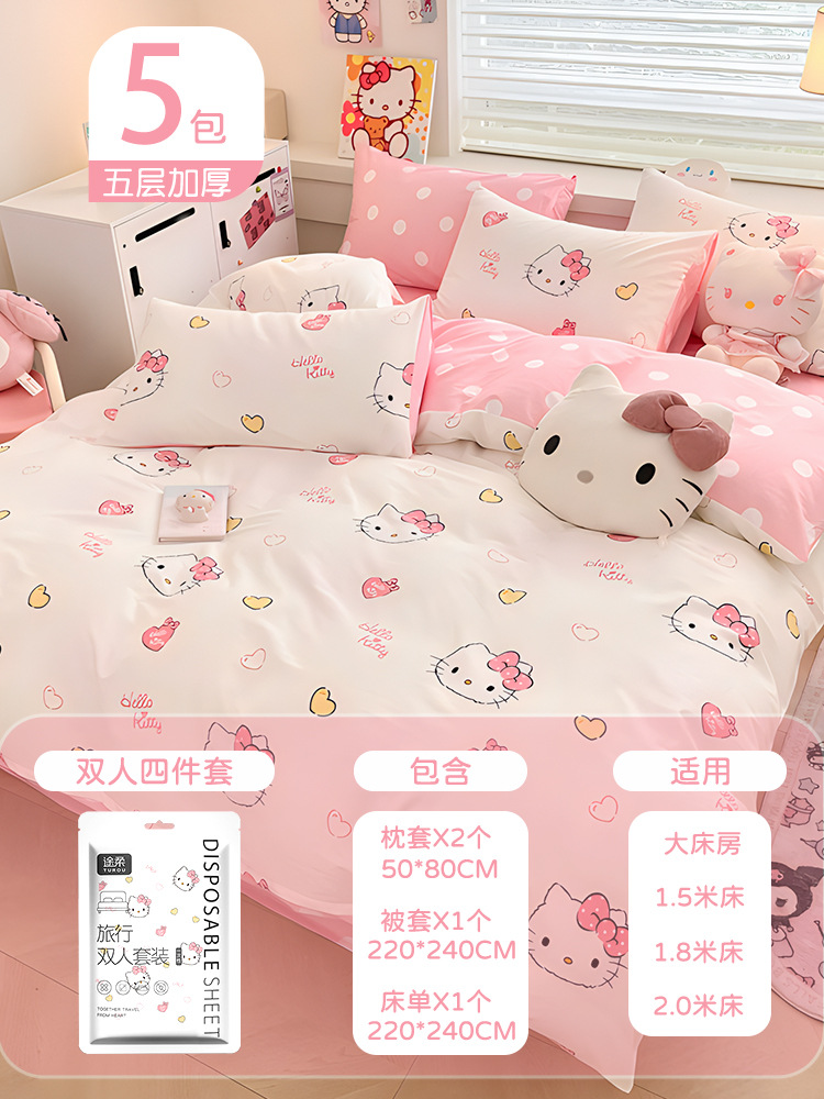 휴대용 일회용 침대 시트 퀼트 커버 베개 케이스 호텔 여행 용품 침대 4 피스 세트 더블 더러운 퀼트 커버 두껍게스토어 가기