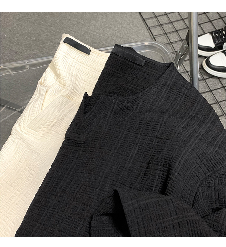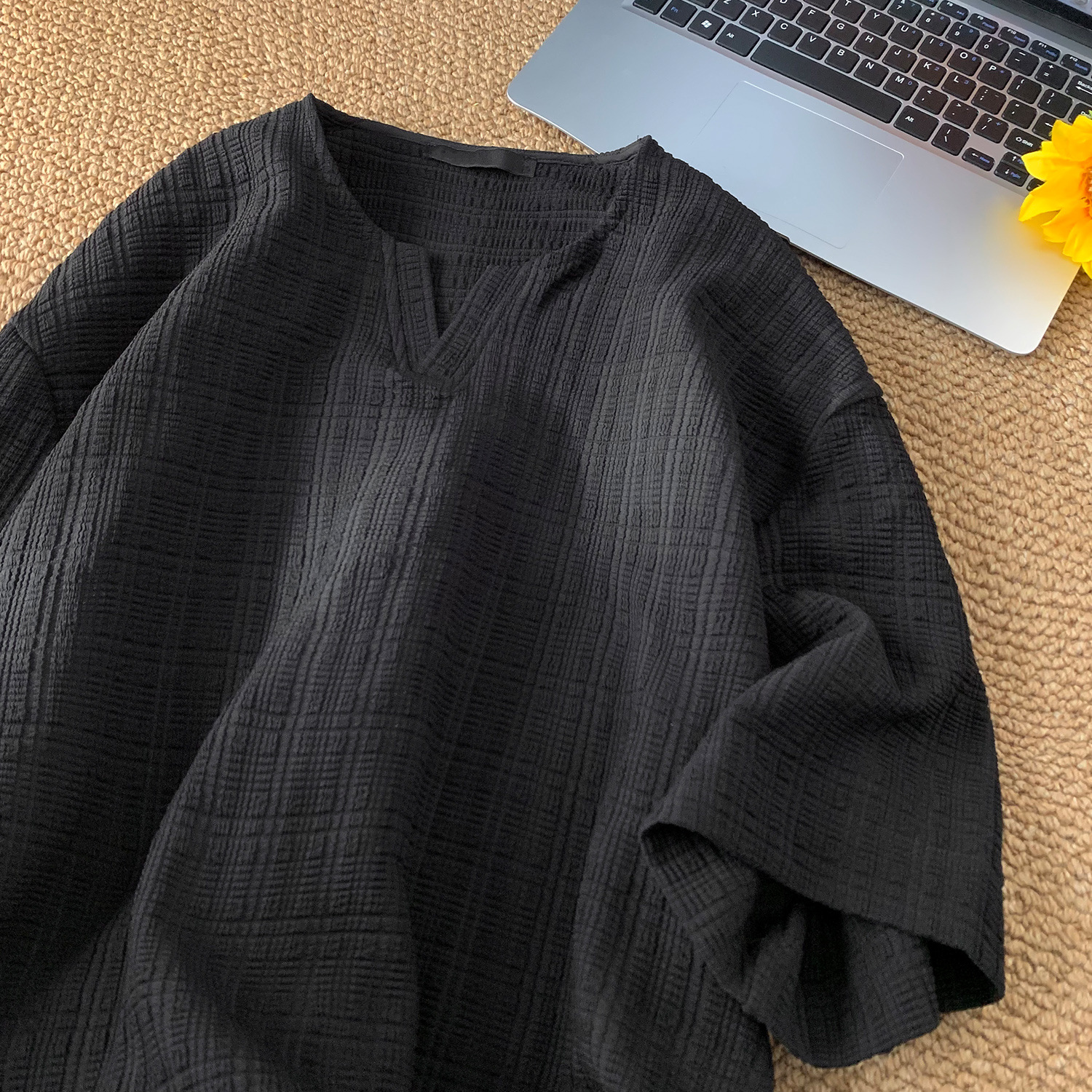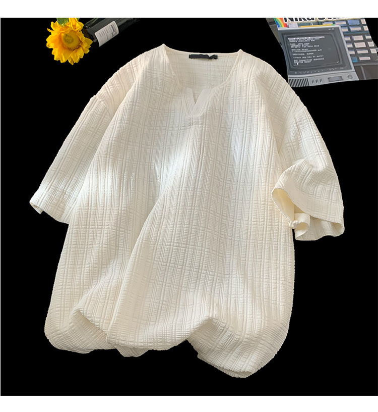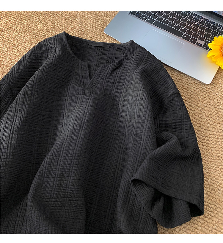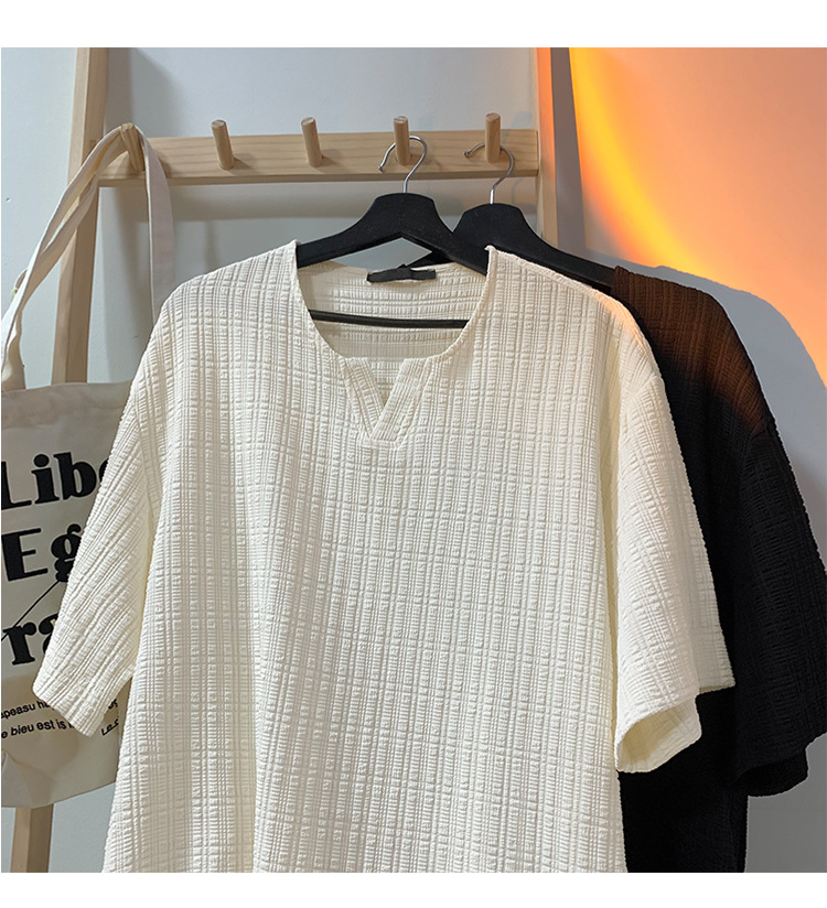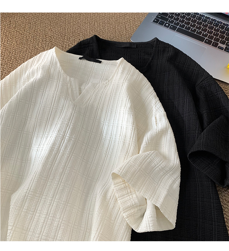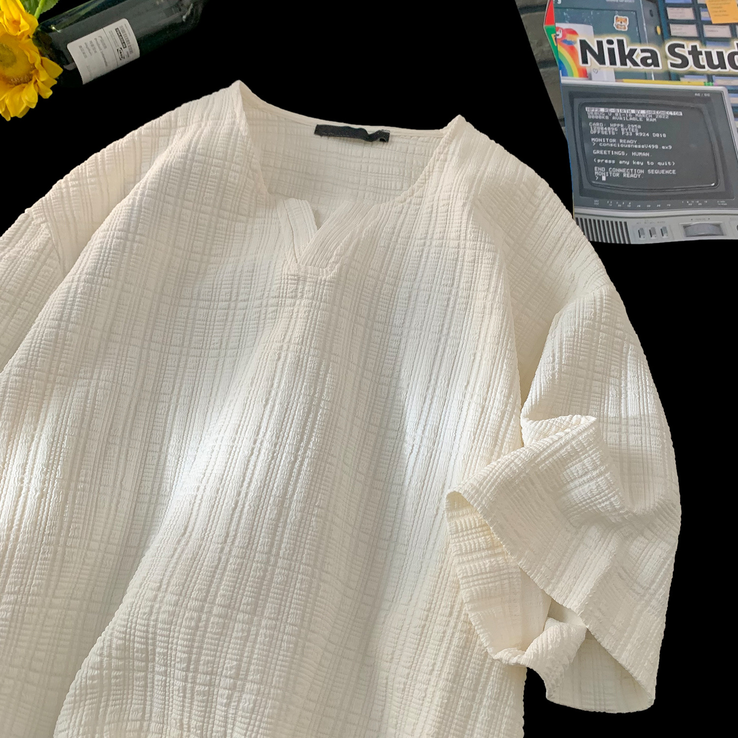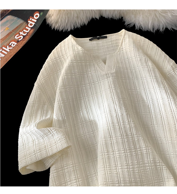 텍스처 아이스 실크 반팔 티셔츠 남성용 여름 쿨 루즈 V 넥 유행 브랜드 유행 하이 엔드 아메리칸 반소매 옷스토어 가기