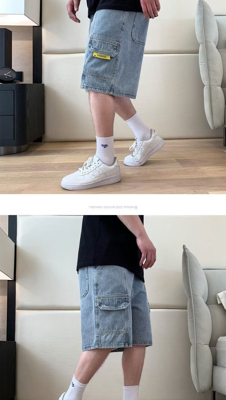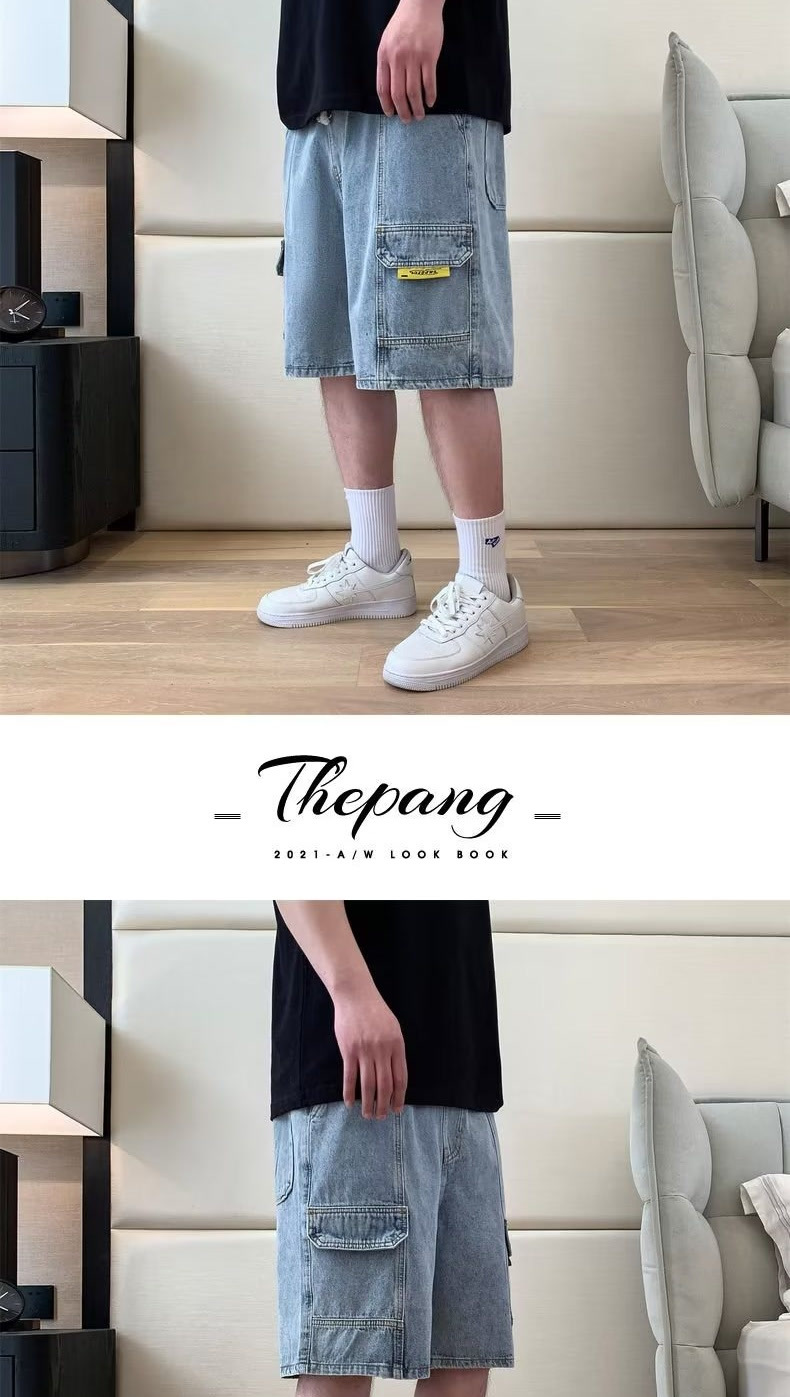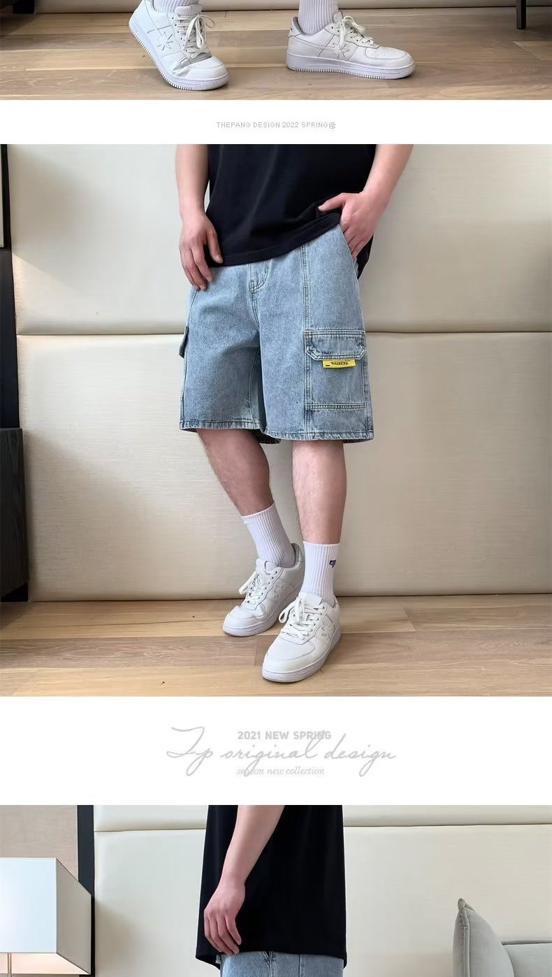 여름 툴링 데님 반바지 남성용 트렌디 브랜드 루즈 플러스 대형 외형 5 점 바지 유행 지방 바지스토어 가기