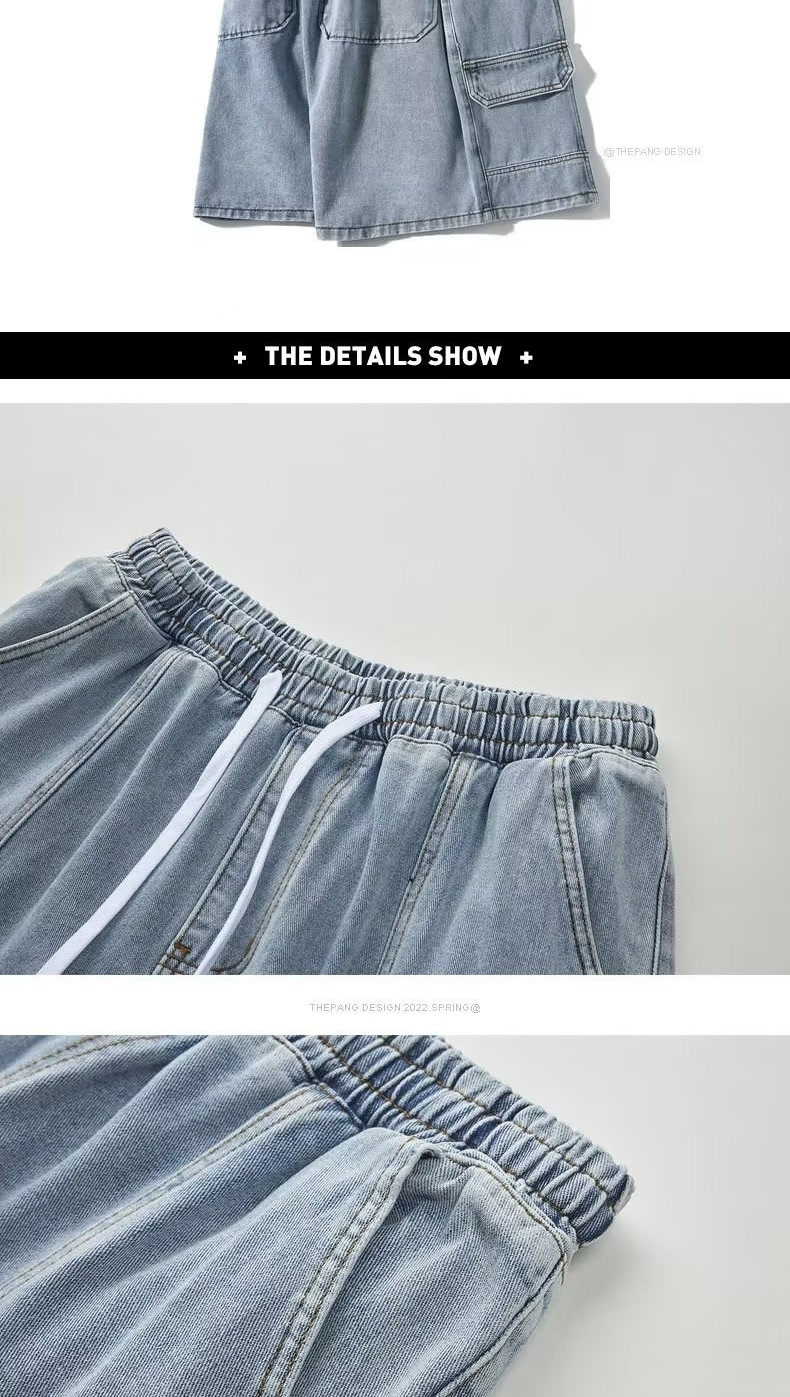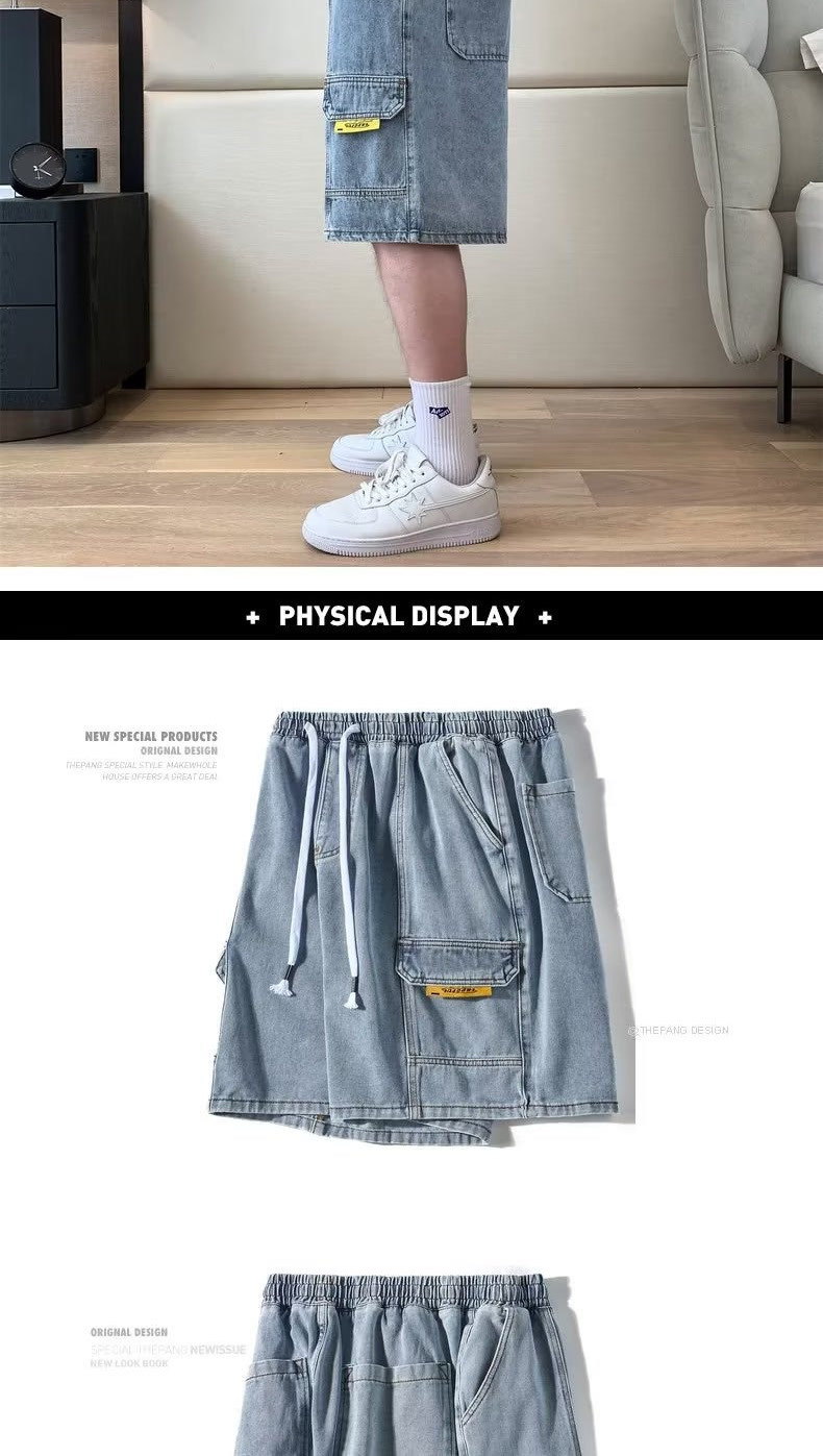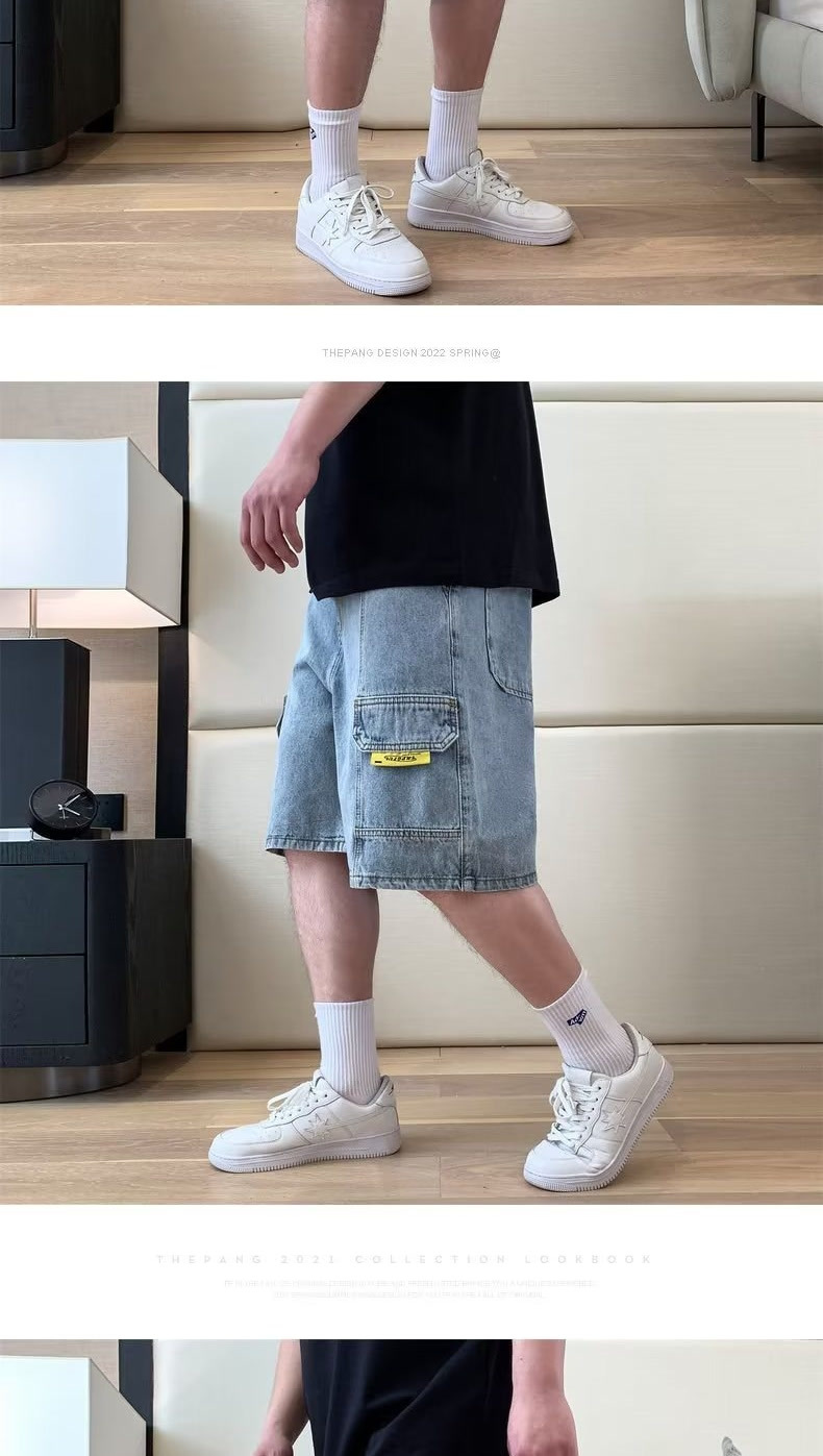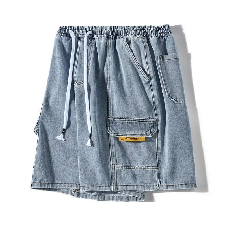 여름 툴링 데님 반바지 남성용 트렌디 브랜드 루즈 플러스 대형 외형 5 점 바지 유행 지방 바지스토어 가기