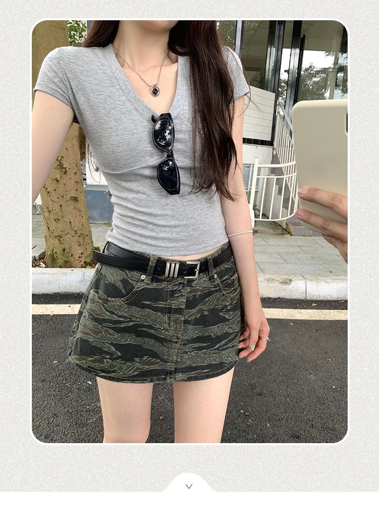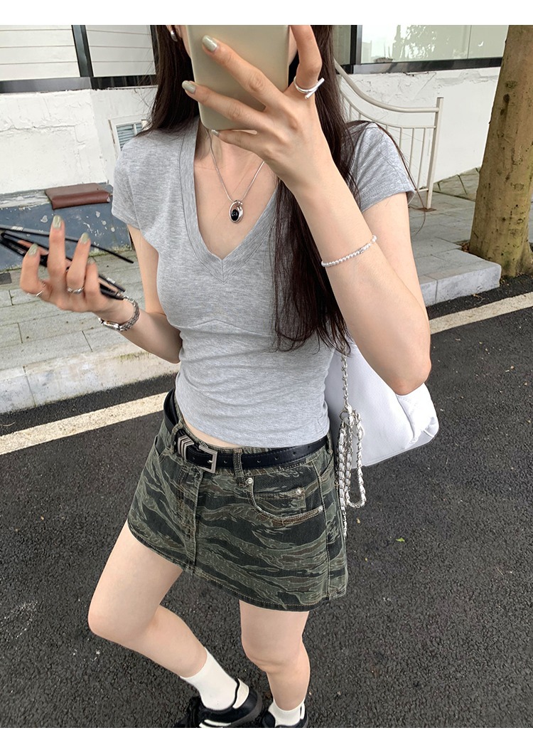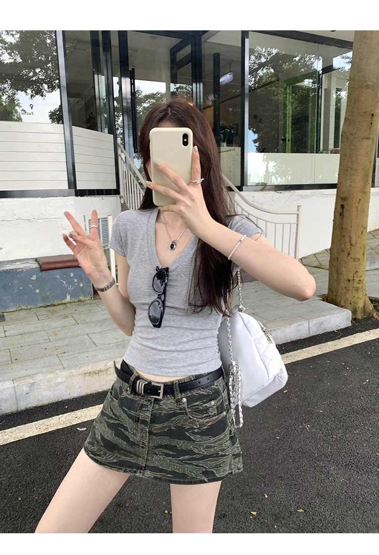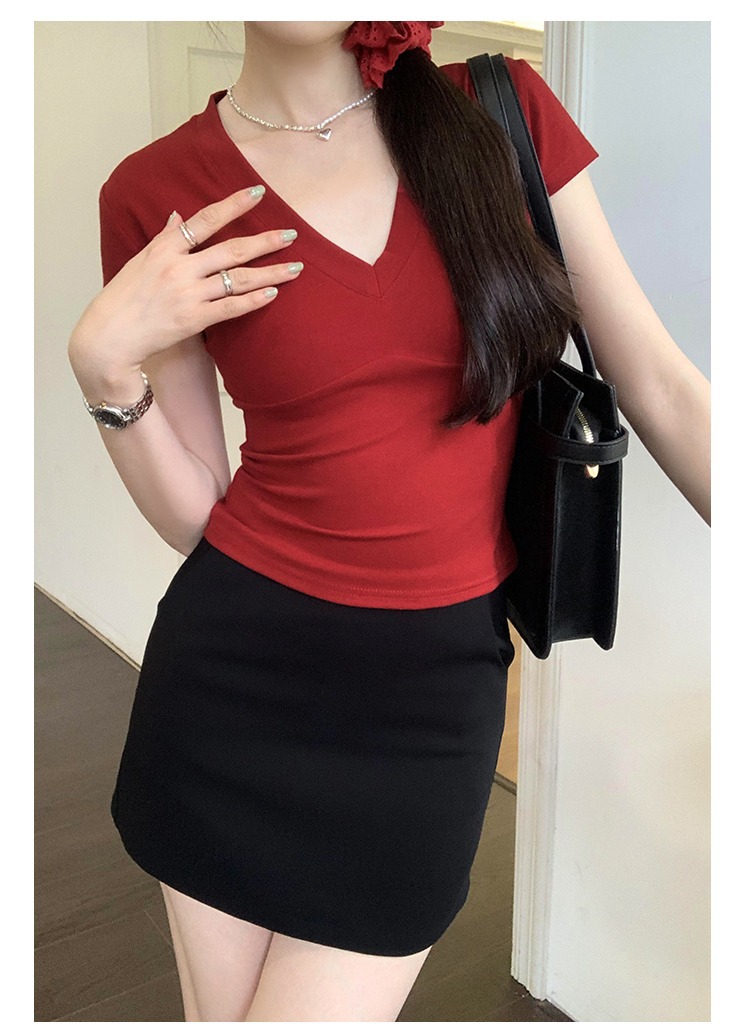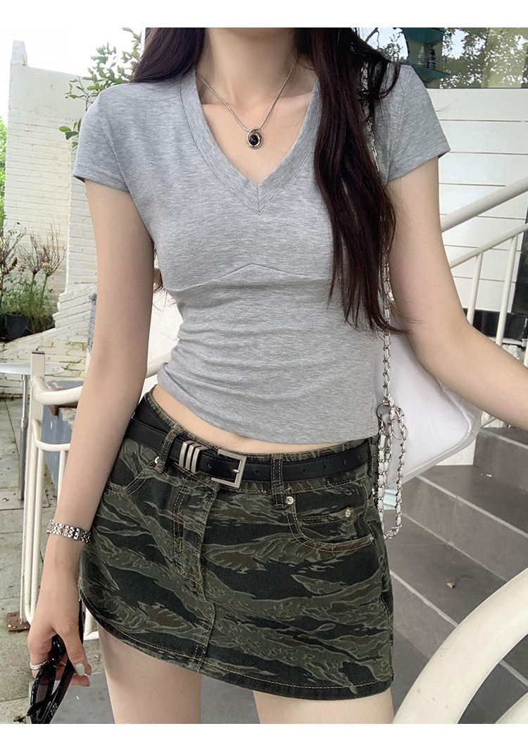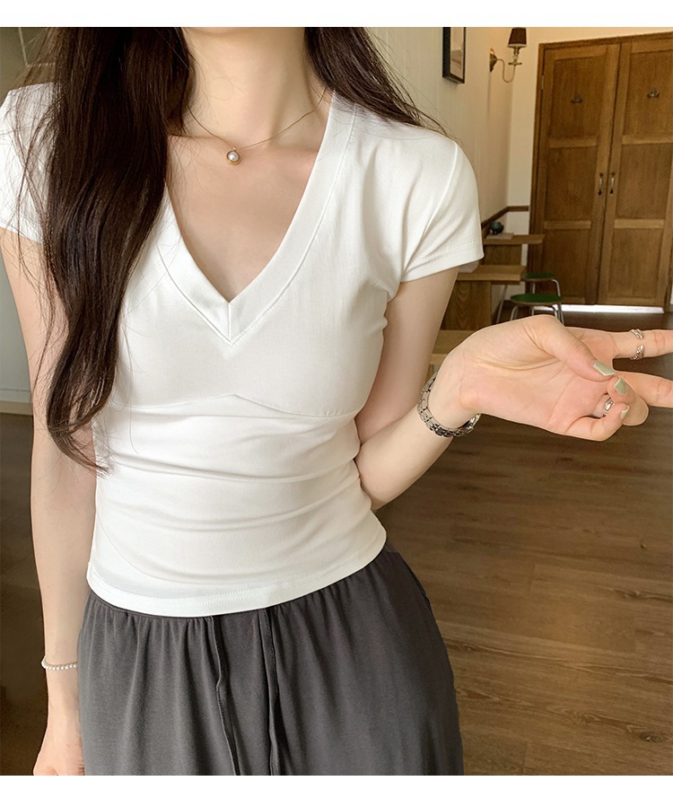 [레이온 260g 좋은 품질] 세련된 스플릿 스티칭 v-neck 짧은 소매 티셔츠 여성의 여름 어깨 쇼트 탑