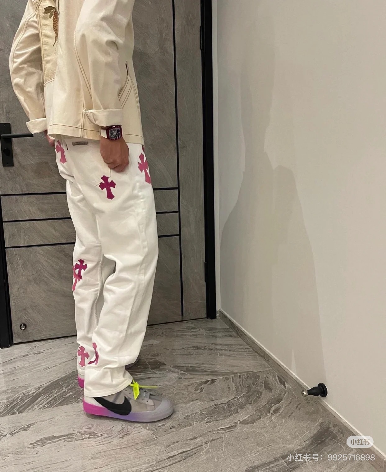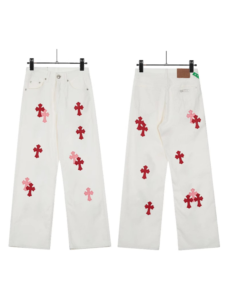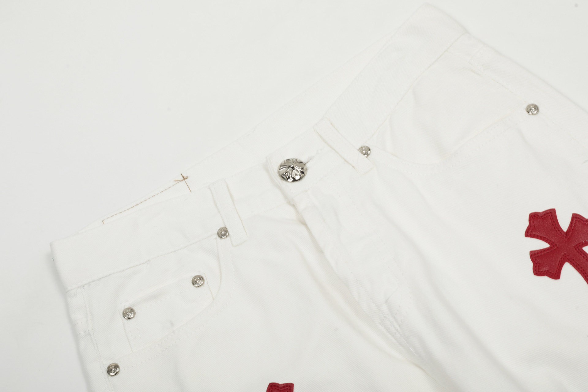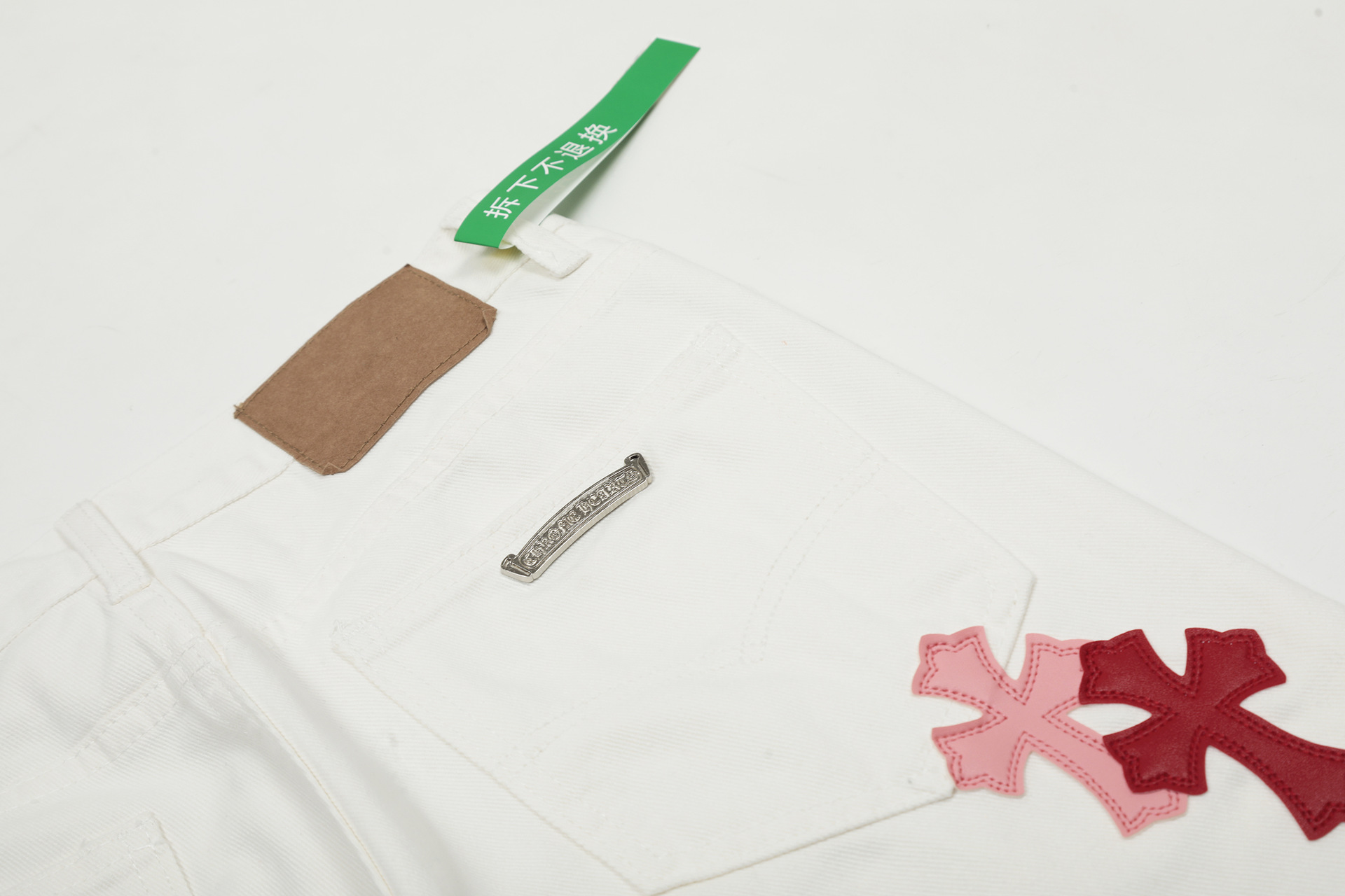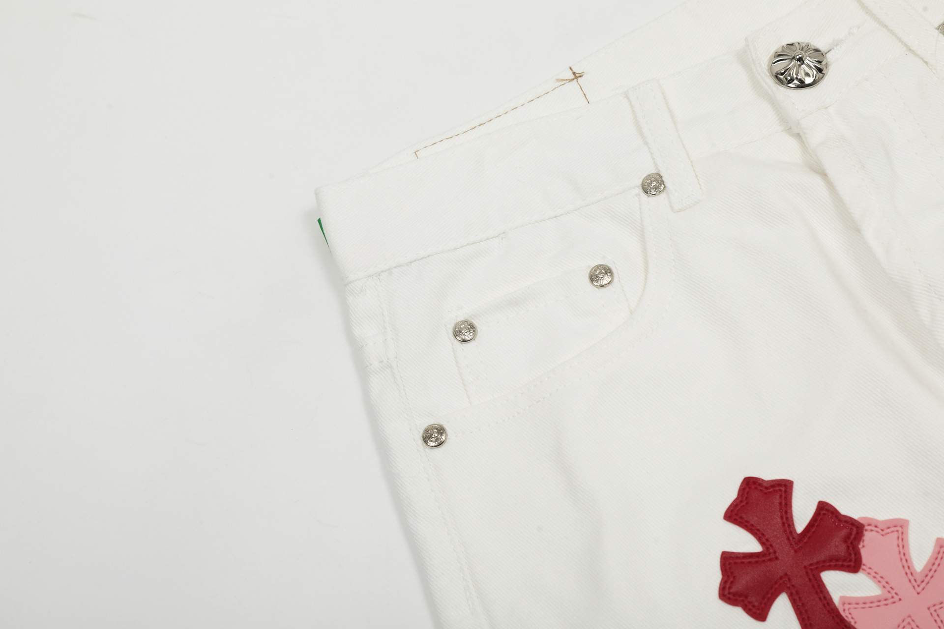 크롬 하트 25 새로운 크로우 CH 마이애미 화이트 파우더 제한 크로스 가죽 청바지 도매스토어 가기