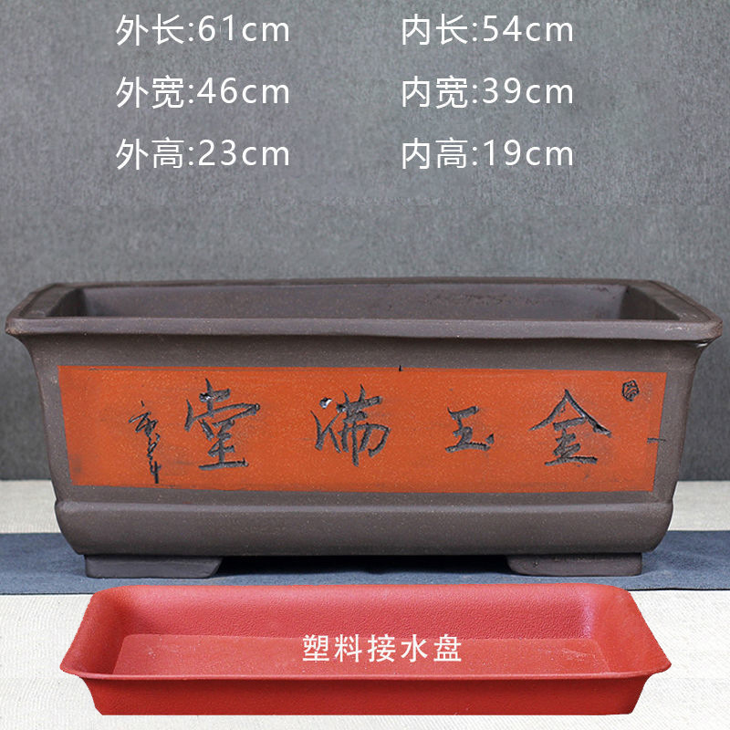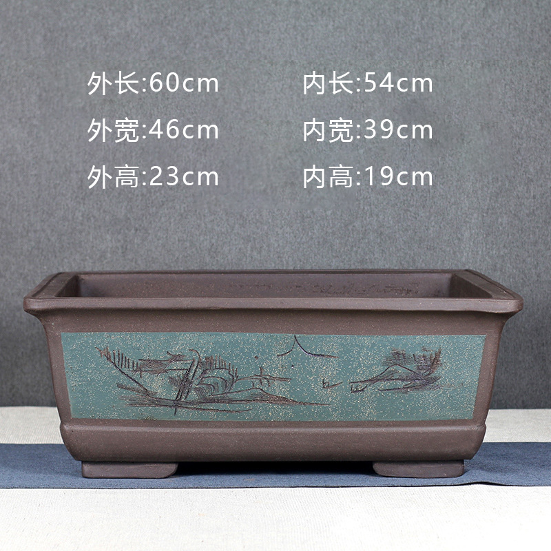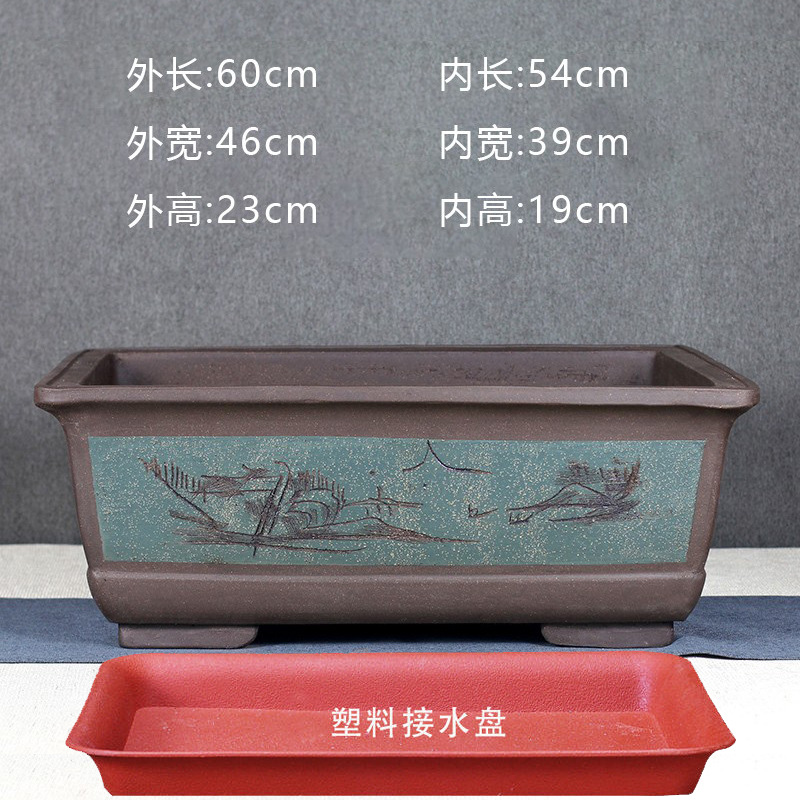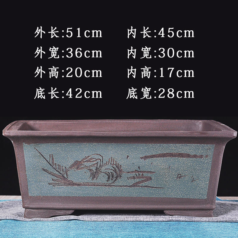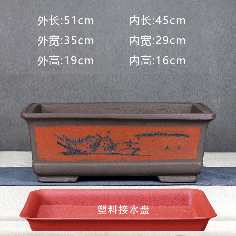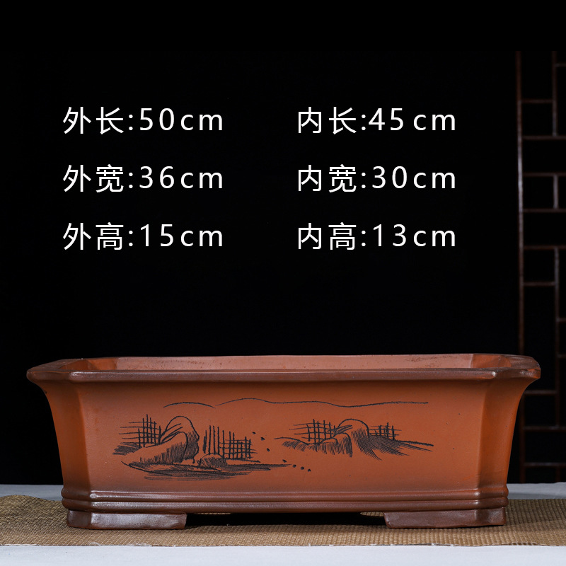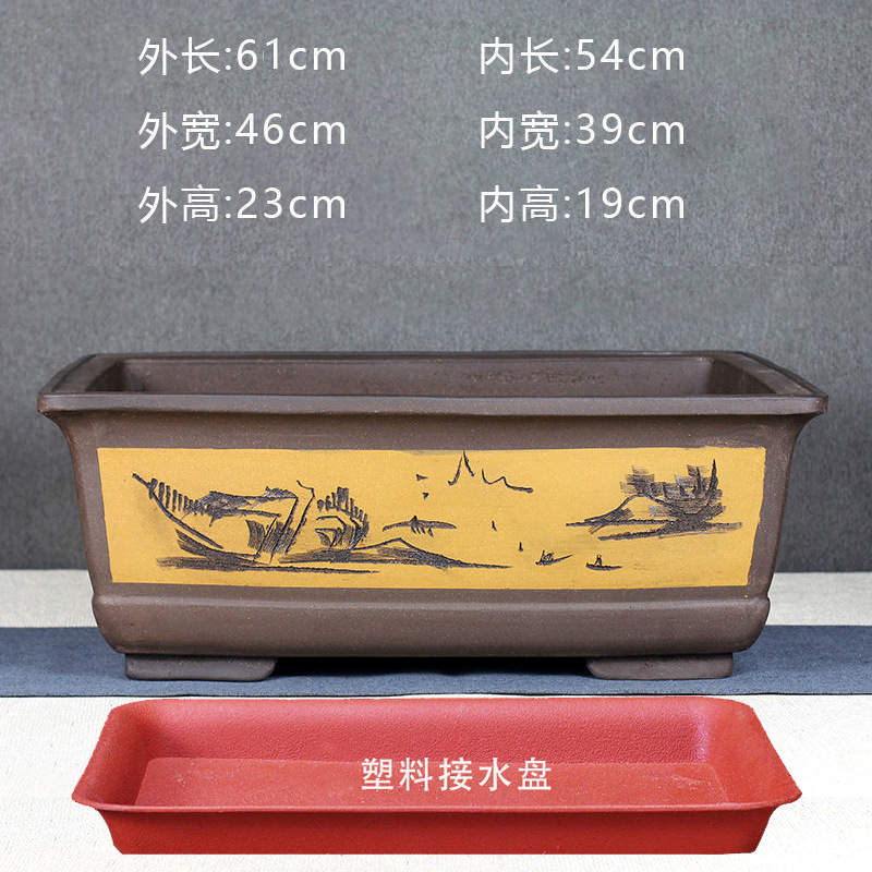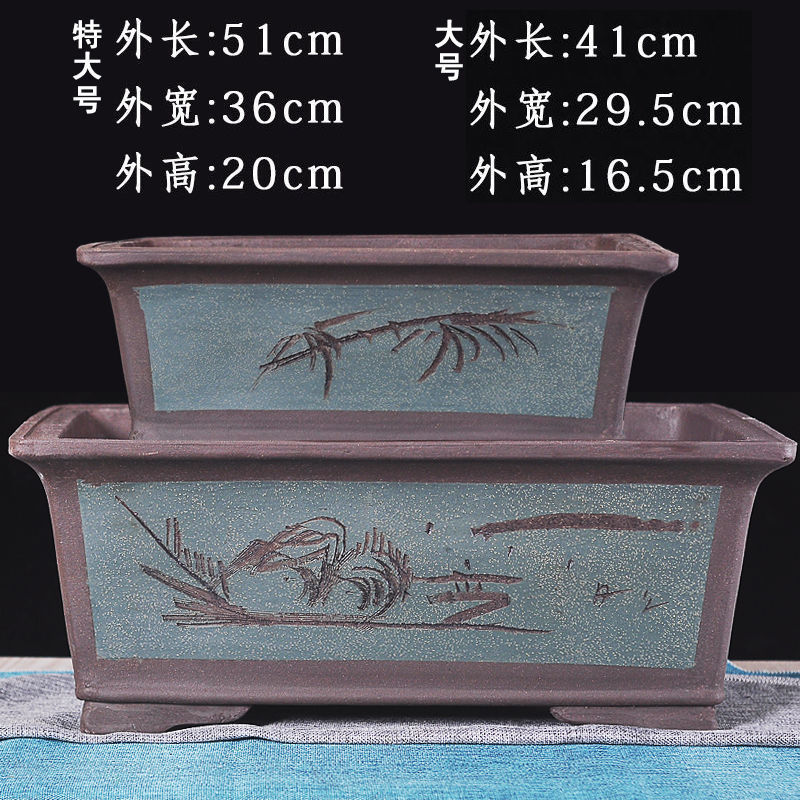 Yixing Purple Sand 직사각형 mangle Pot Fleshy Old Pile Plum Blossom 초대형 분재 냄비 조경 건물 바위 실내 꽃 냄비스토어 가기
