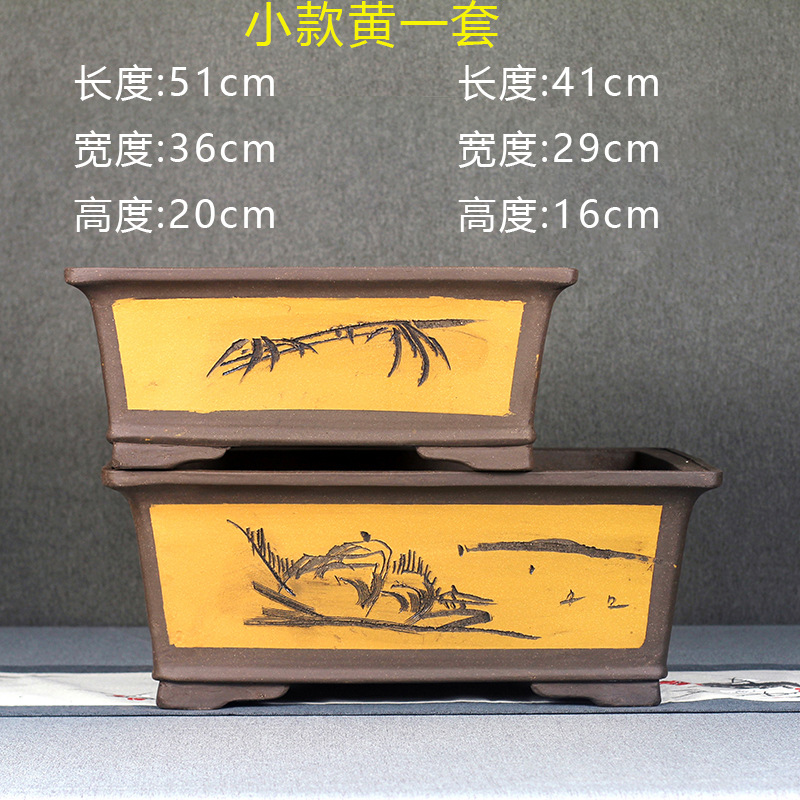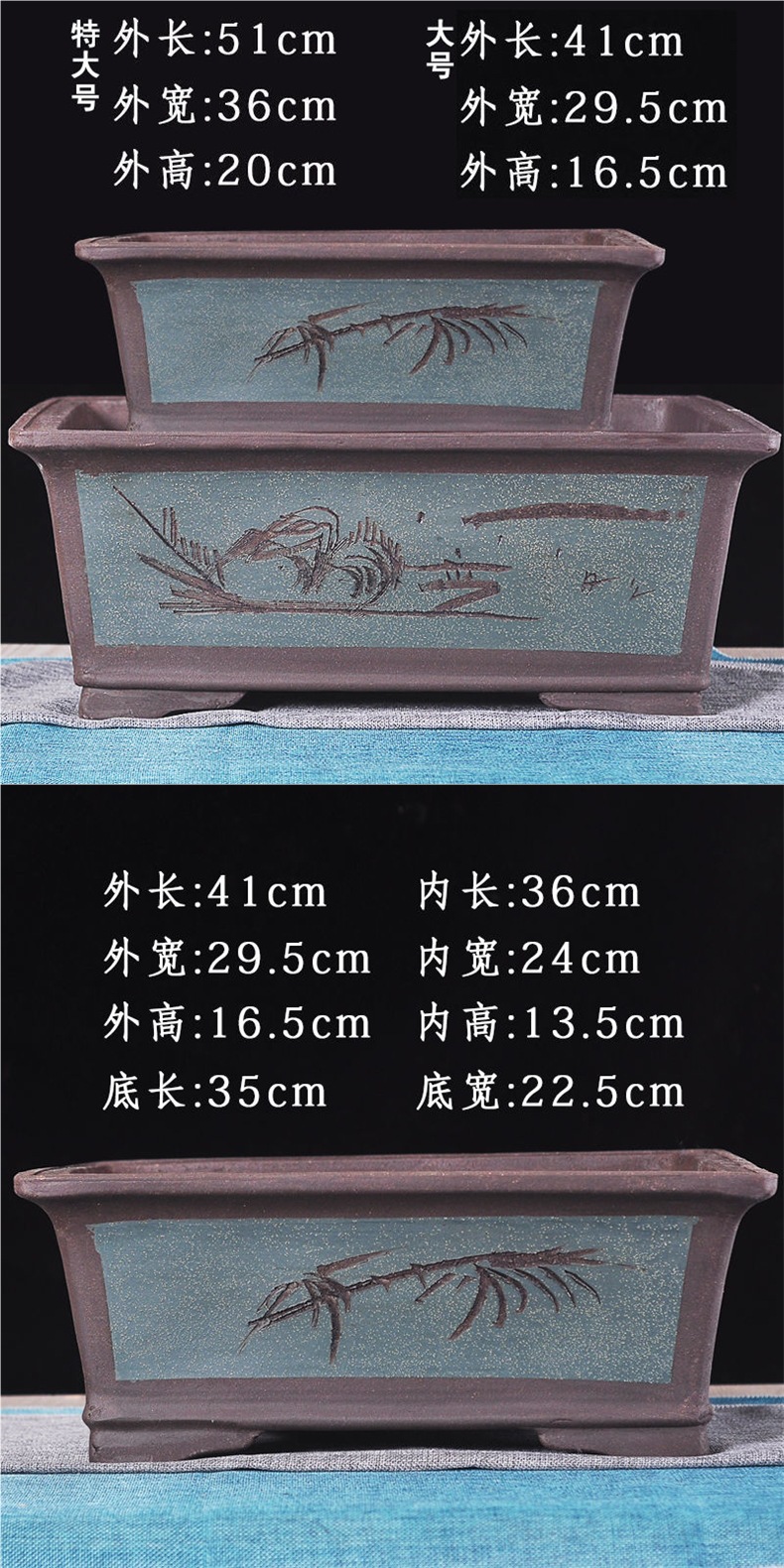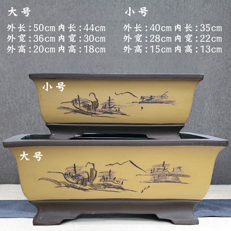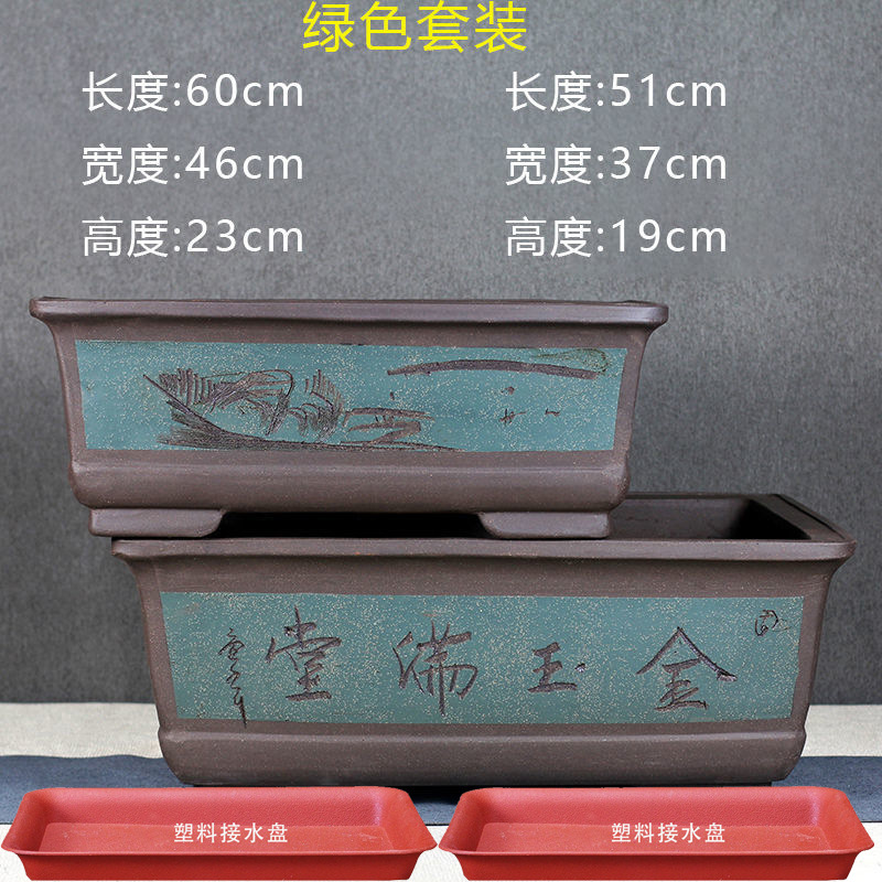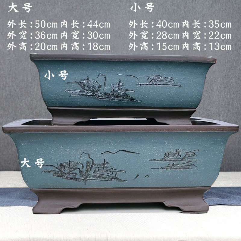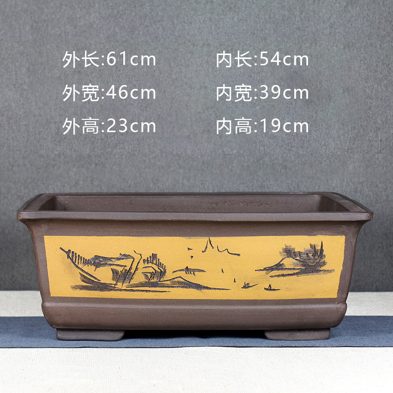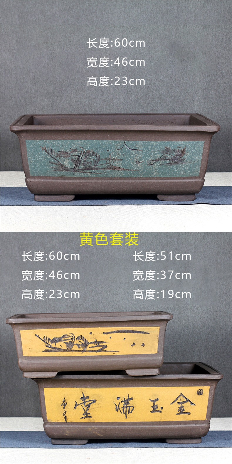 Yixing Purple Sand 직사각형 mangle Pot Fleshy Old Pile Plum Blossom 초대형 분재 냄비 조경 건물 바위 실내 꽃 냄비스토어 가기
