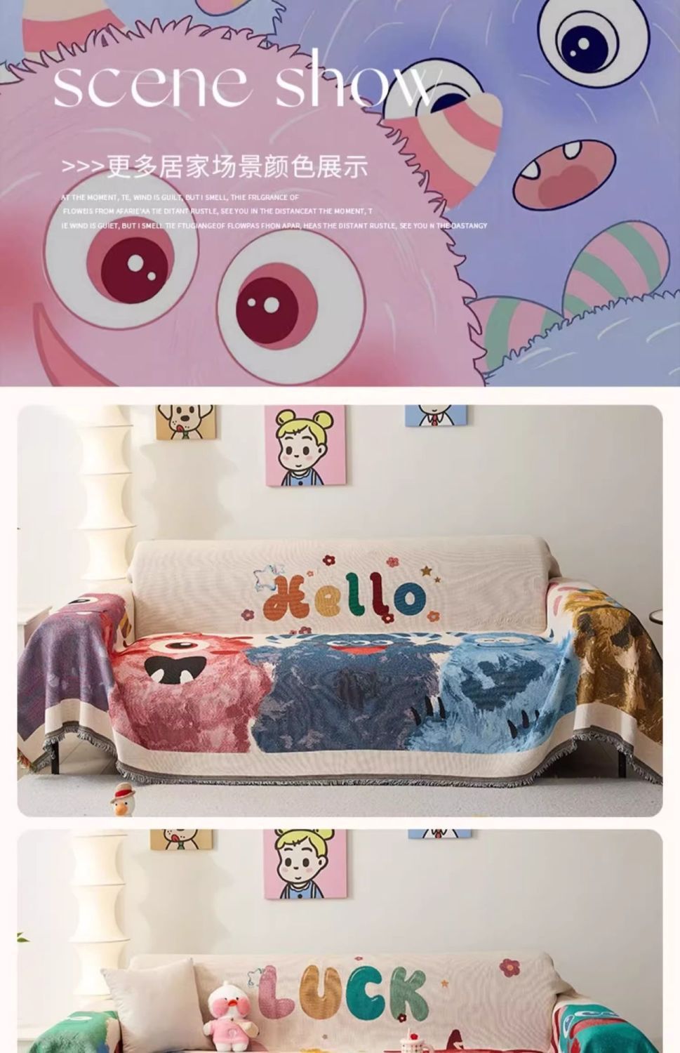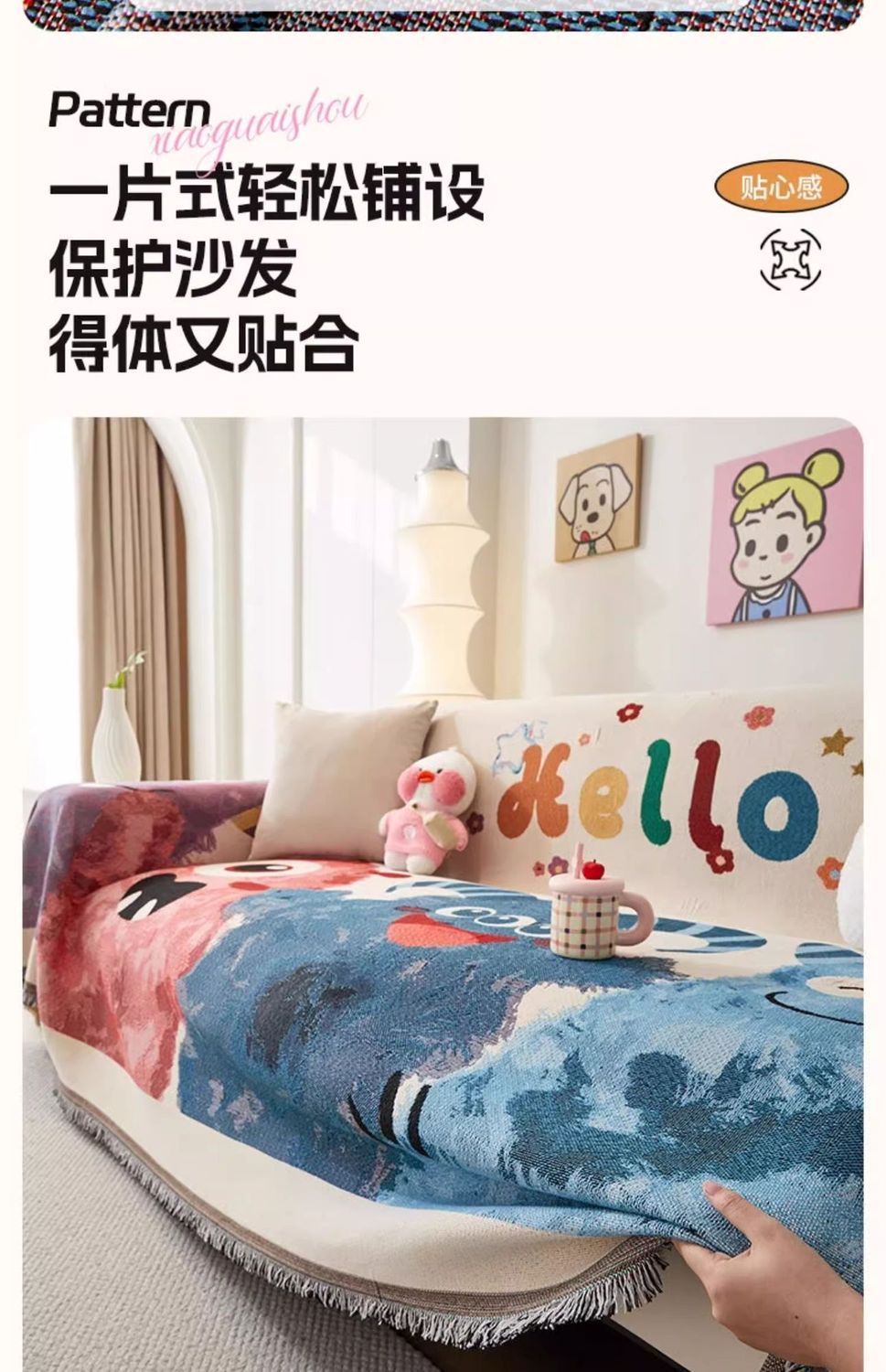 만화 소파 커버 천 수건 2024 새로운 미끄럼 방지 쿠션 커버 사계절 보편적 인 일품 포함 담요 도매스토어 가기