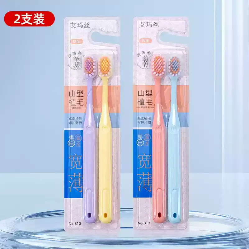 높은 색상 가치 산 모양의 볼록 칫솔 초정밀 부드러운 헤어 넓고 얇은 성인 치약 보호 소프트 헤어 칫솔 껌 청소 홈 팩