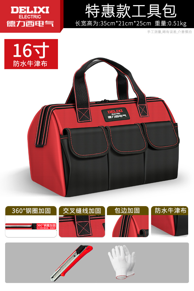 Delixi 전기 도구 키트 내구성 전기 하드웨어 상자 특수 캔버스 다기능 휴대용 저장 가방스토어 가기