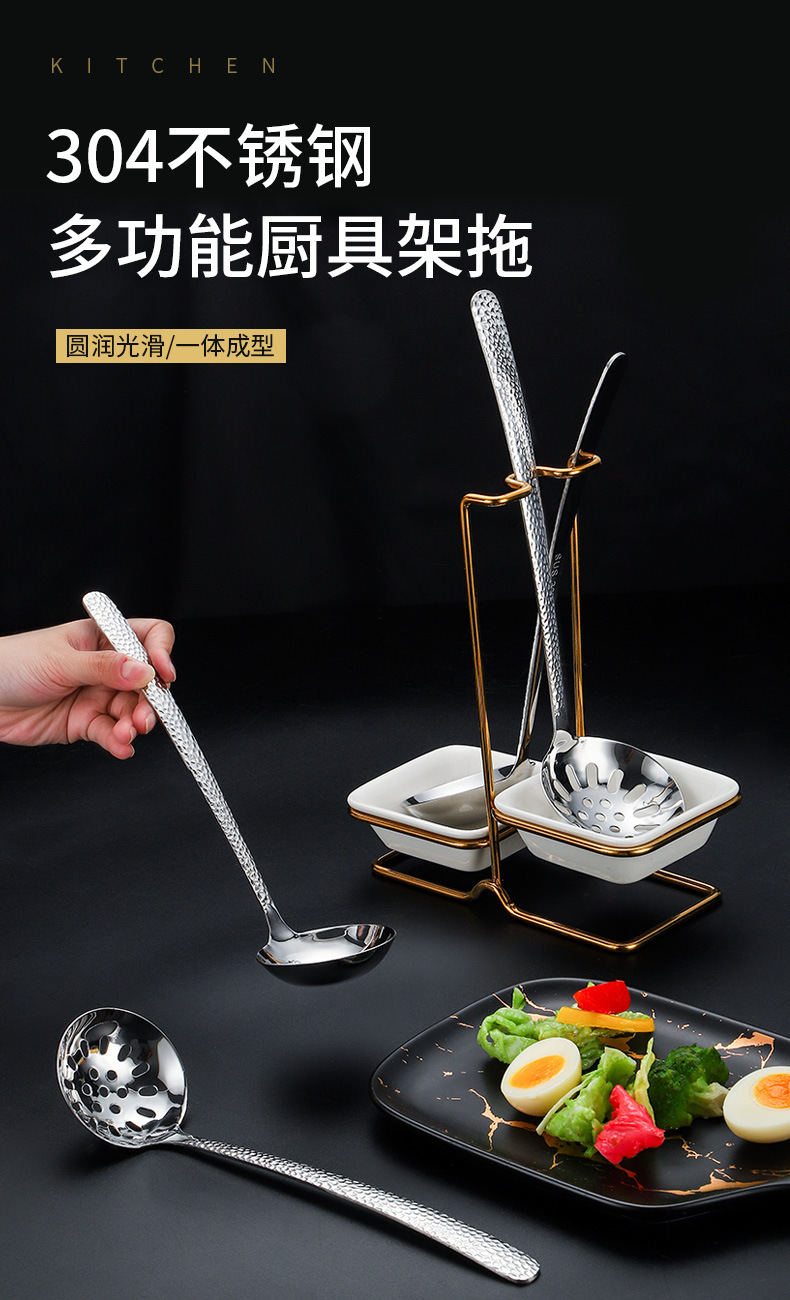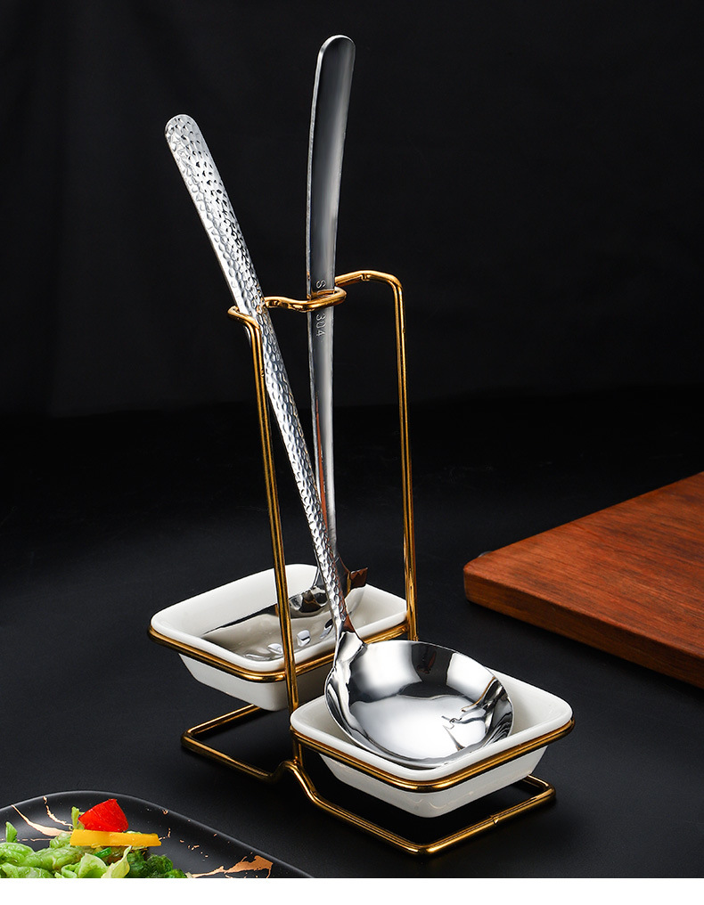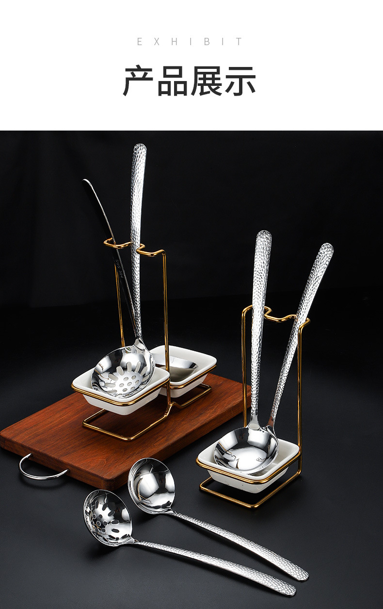 스테인레스 스틸 티타늄 도금 황금 수프 스푼 수프 누출 랙 식기 보관 랙 핫 팟 레스토랑 공공 스푼 세트 랙 스토리지 랙