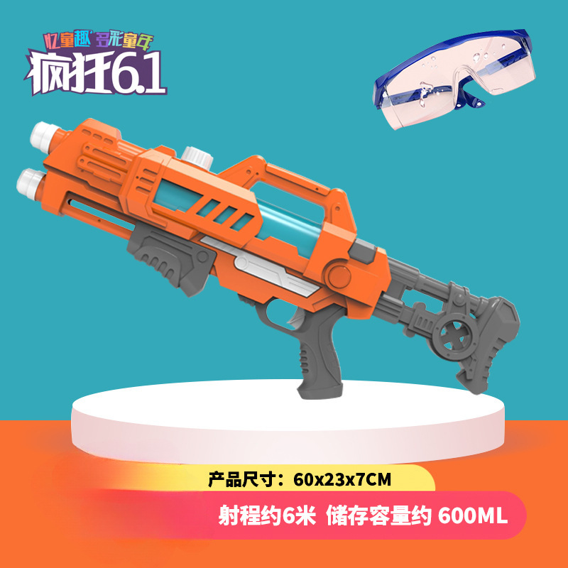 • 초대형 더블 노즐 물총 60cm 고글 포함 - 오렌지