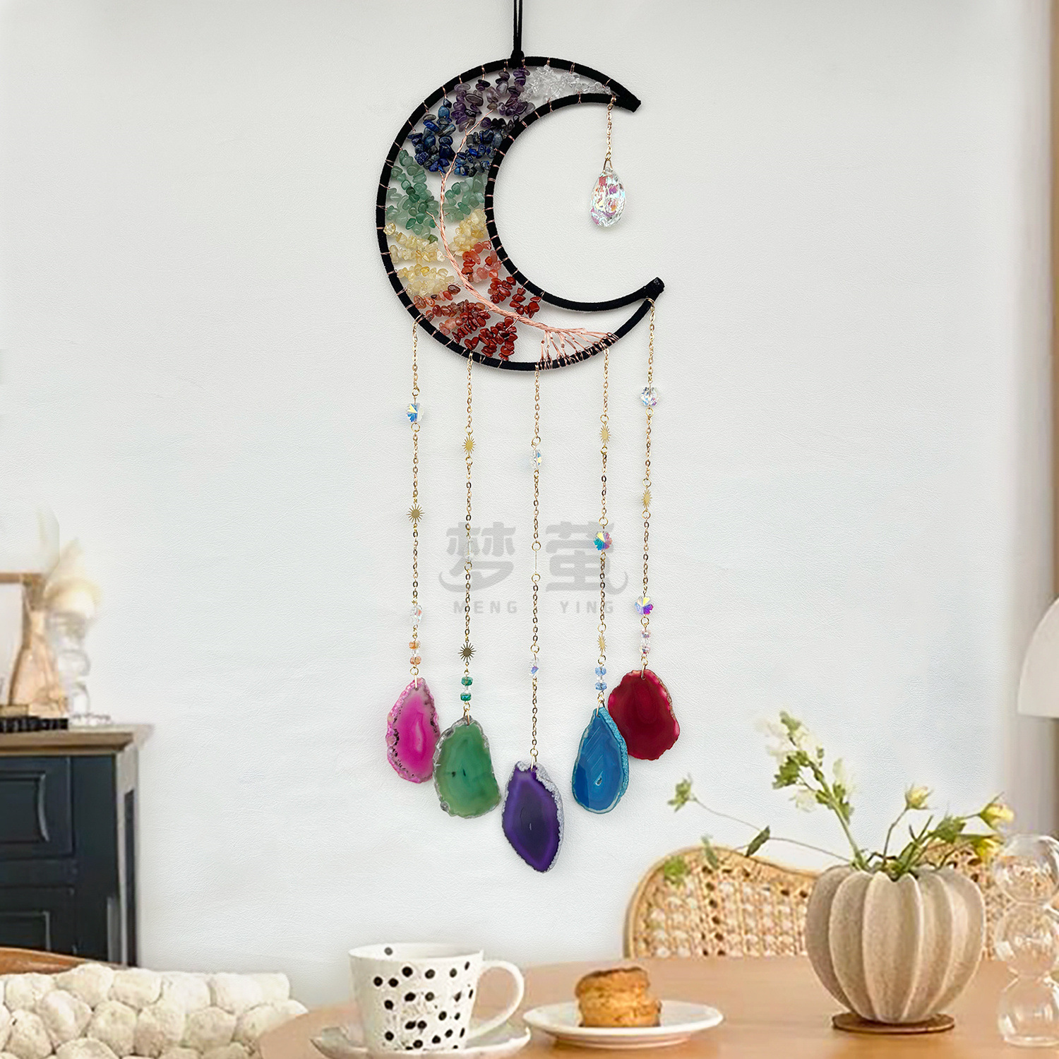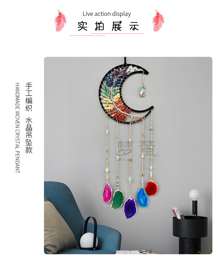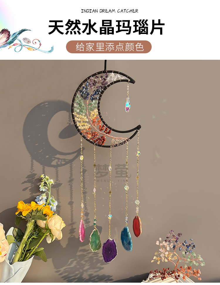 자연 자갈 태양 포수 펜던트 햇빛 무지개 꿈 포수 어린이 유치원 하늘 발코니 펜던트 바람 차임