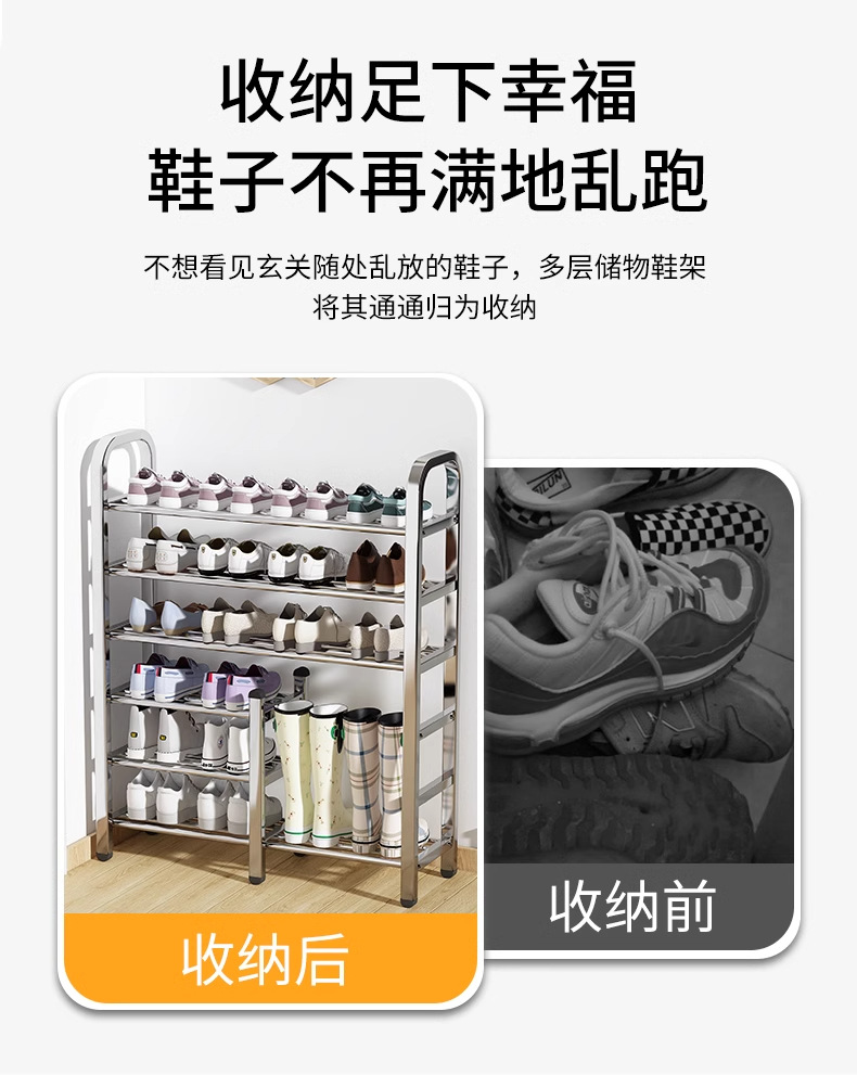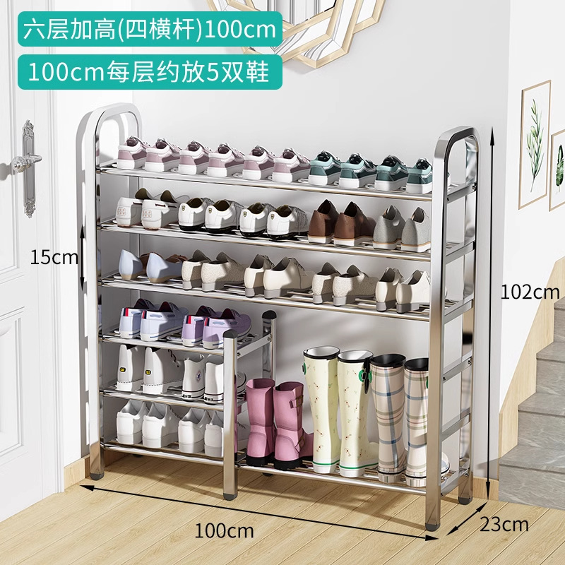 스테인레스 스틸 신발 랙 간단한 가정용 실내 잘 생긴 기숙사 문 다층 보관 아티팩트 하우스 휴대용 랙스토어 가기