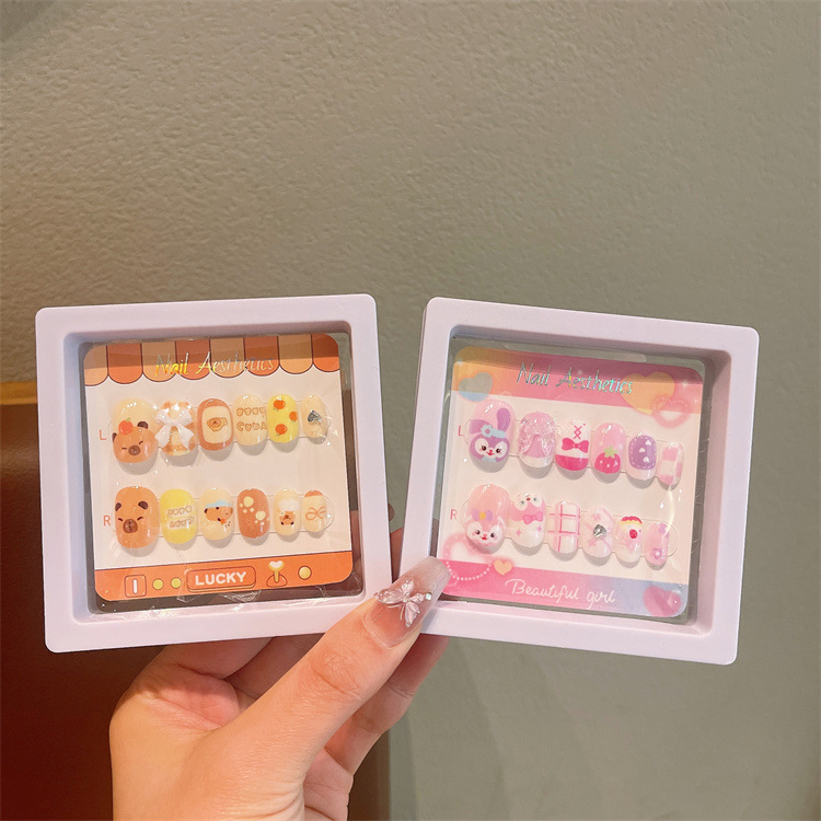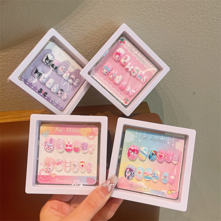어린이 귀여운 만화 Kulomi 네일 패치 어린 소녀의 재미있는 네일 패치 이동식 웨어러블 네일 패치 박스