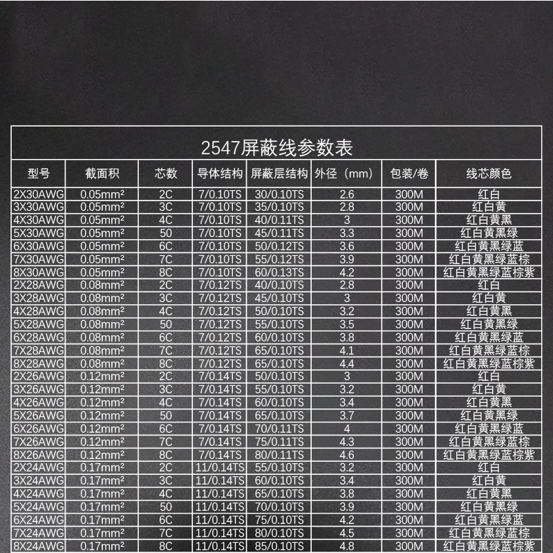 2547 차폐 케이블 2/3/4/5/6/7/8 코어 USB 케이블 30 28 26 24 22 20AWG 소매