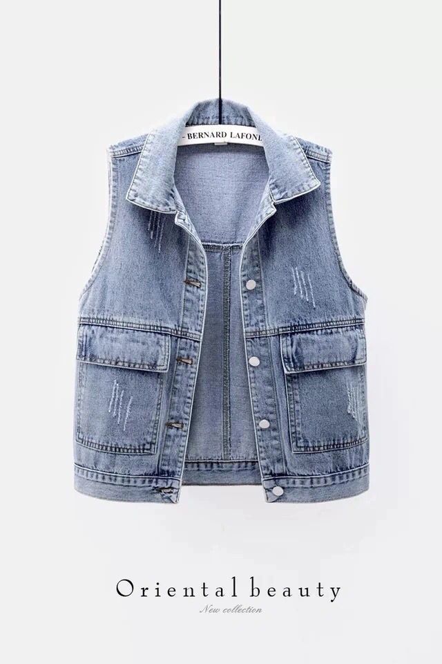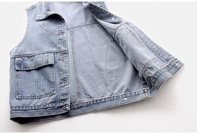 [280000 명] 데님 조끼 여성의 짧은 봄, 여름, 가을, 겨울 간단한 큰 주머니 민소매 조끼스토어 가기