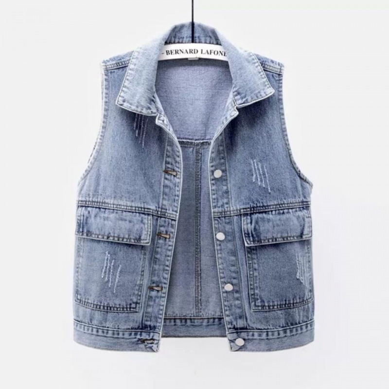 [280000 명] 데님 조끼 여성의 짧은 봄, 여름, 가을, 겨울 간단한 큰 주머니 민소매 조끼