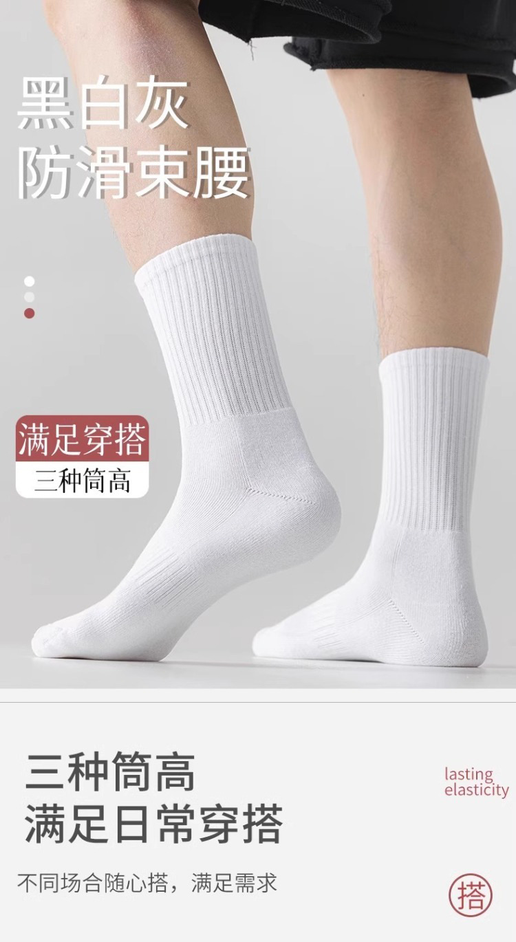Chuji 단색 남녀 공용 스택 양말, 허리 조절 스포츠 흑백 스타킹, 일본식 긴 흰색 양말, 얇은 양말 도매스토어 가기