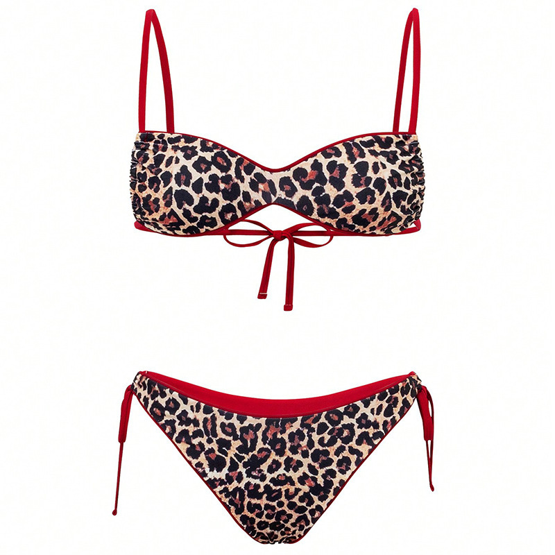 2025 새로운 유럽과 미국의 레오파드 무늬 레이스 업 수영복 여성 3 점 섹시 비키니 휴가 비치 온천 수영복