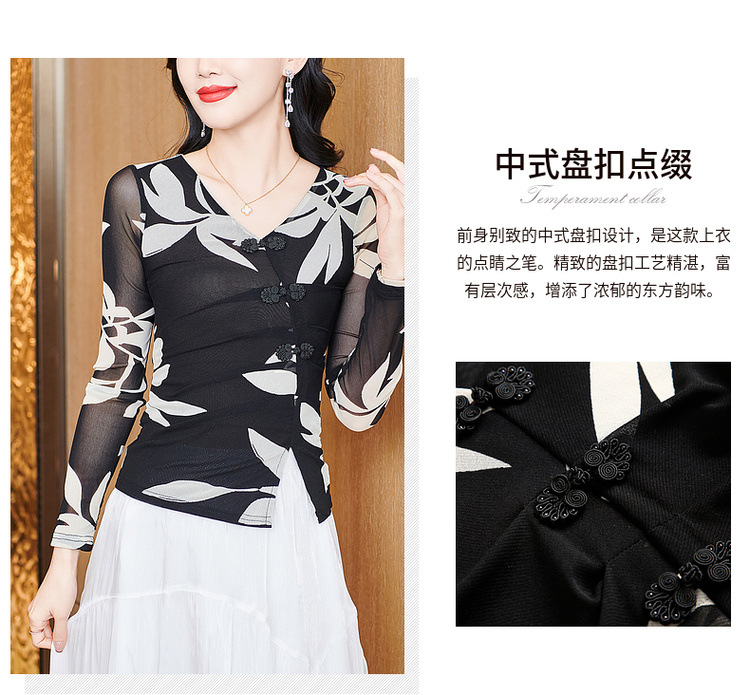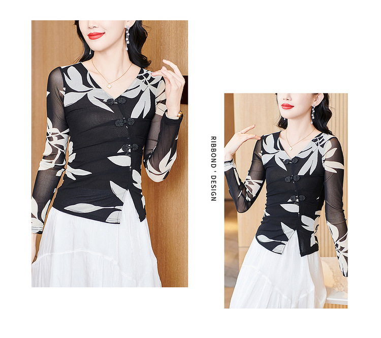 2025 봄 새로운 패션 메쉬 인쇄베이스 셔츠 슬림 티셔츠 V 넥 셔츠 헤어 세대