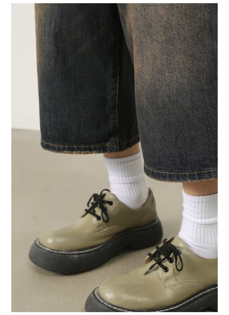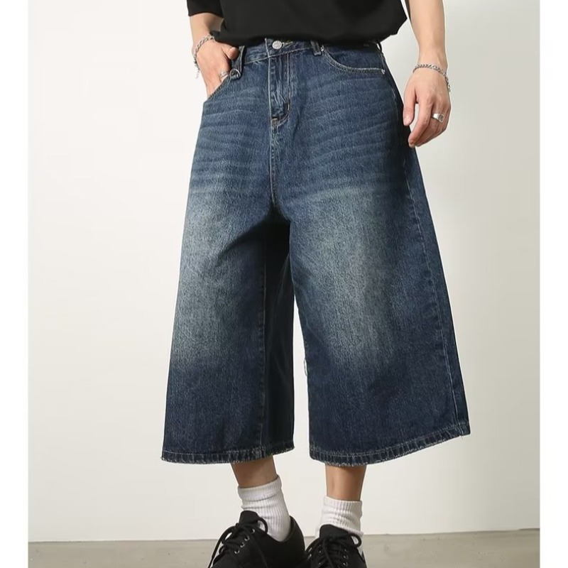 여름 틈새 올 매치 아메리칸 스타일 레트로 올드 블루 데님 반바지 남자 느슨한 스트레이트 와이드 레그 자른 바지스토어 가기