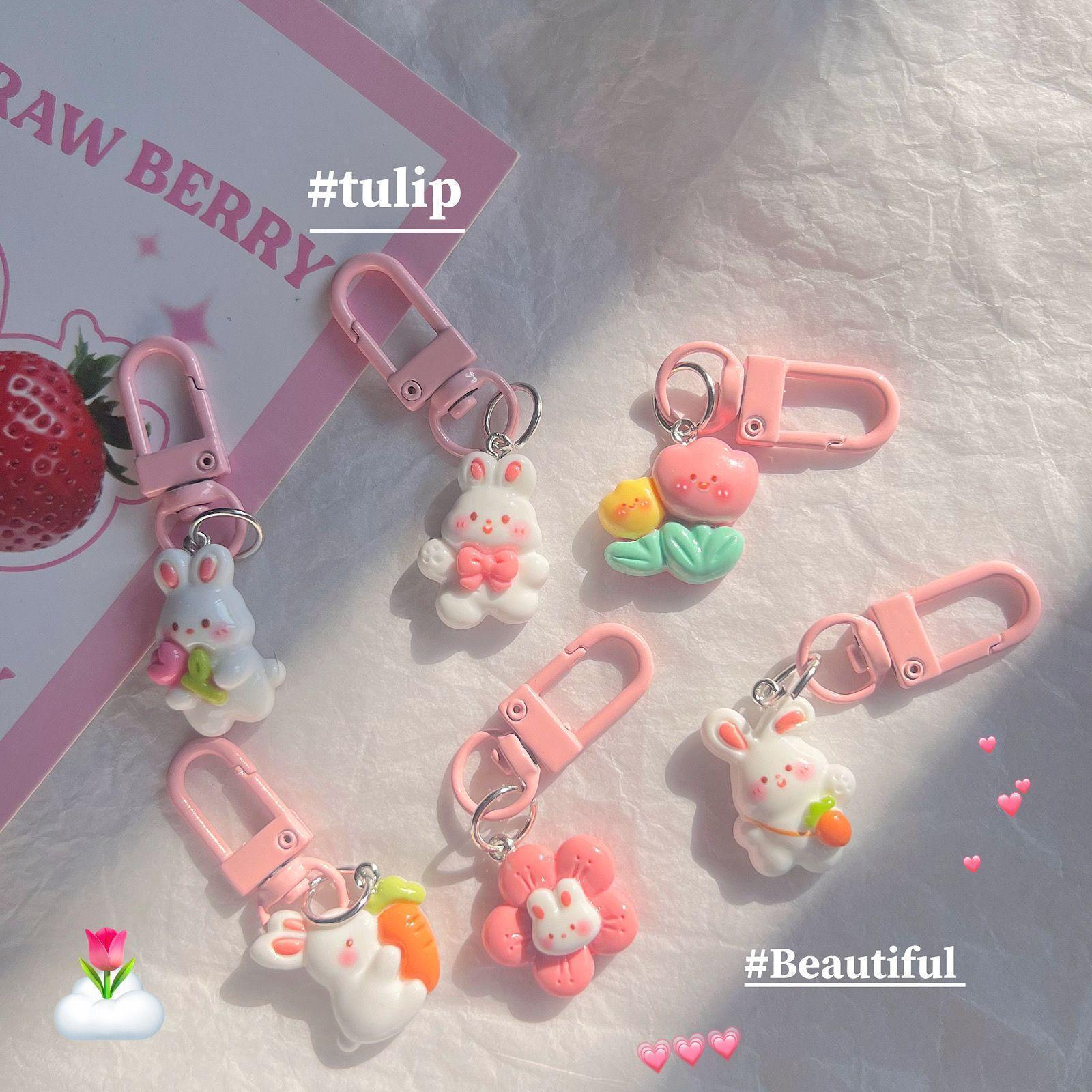 귀여운 꽃 당근 토끼 키 체인 Ins 달콤한 소녀 여자 친구 선물 학교 가방 액세서리 보석 펜던트스토어 가기