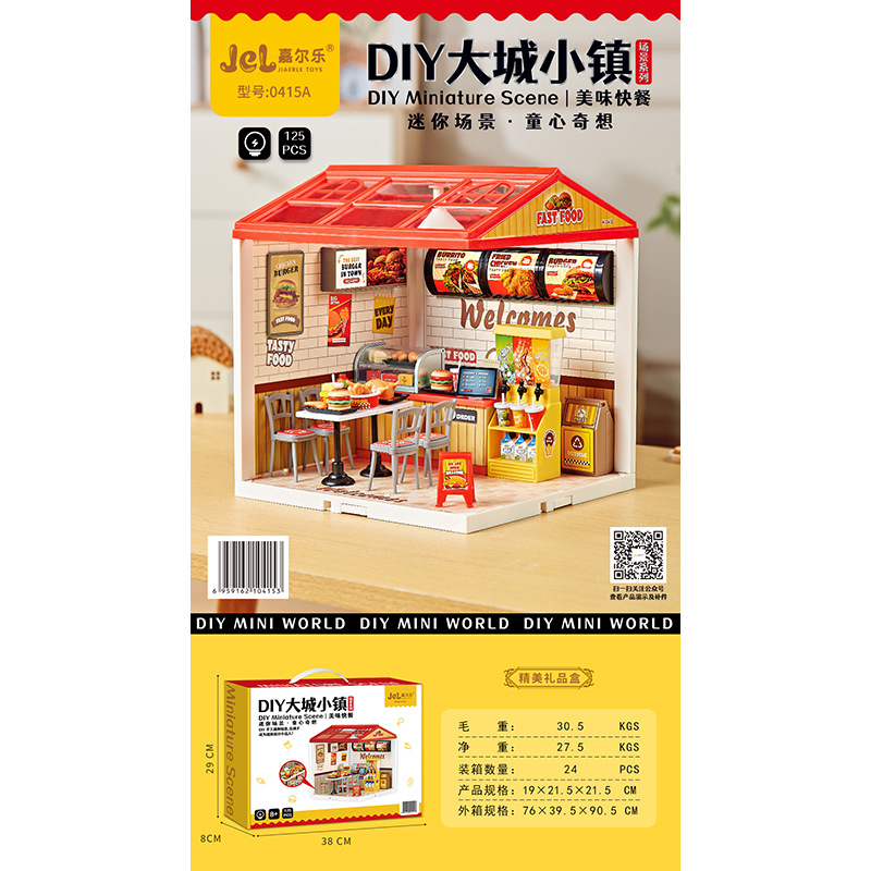빅 타운 타운 미니 숍 밀크 티 햄버거 빌딩 블록 장난감 스테레오 퍼즐 사이버 기념 소녀 Diy 캐빈 장면
