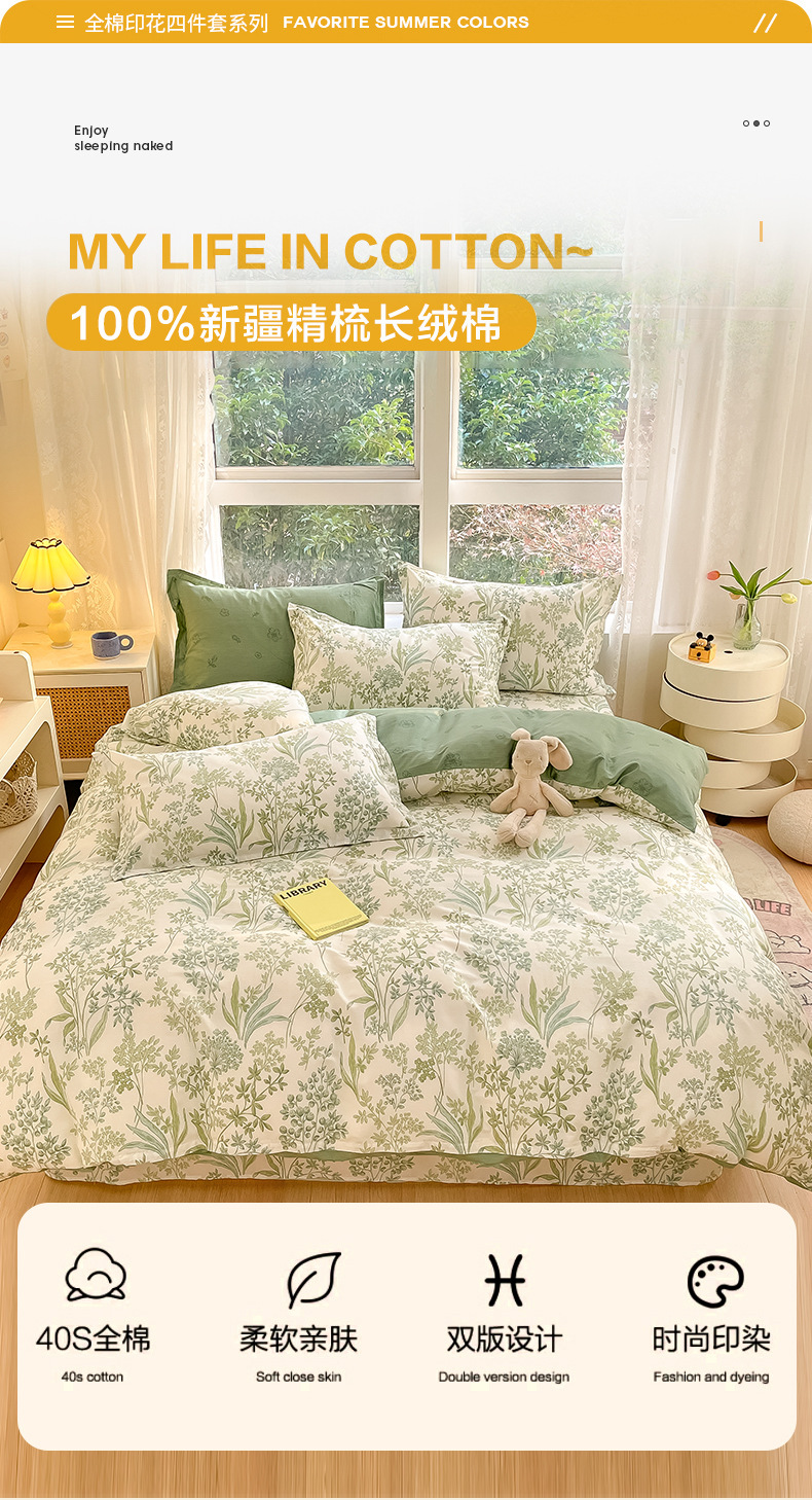 ✅순면 4 피스 세트 Nantong 침대 시트 퀼트 커버 3 피스 세트 침구 엄마와 아기 침대스토어 가기