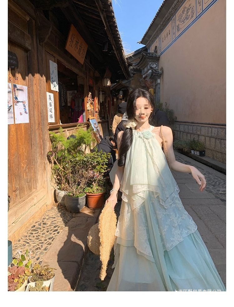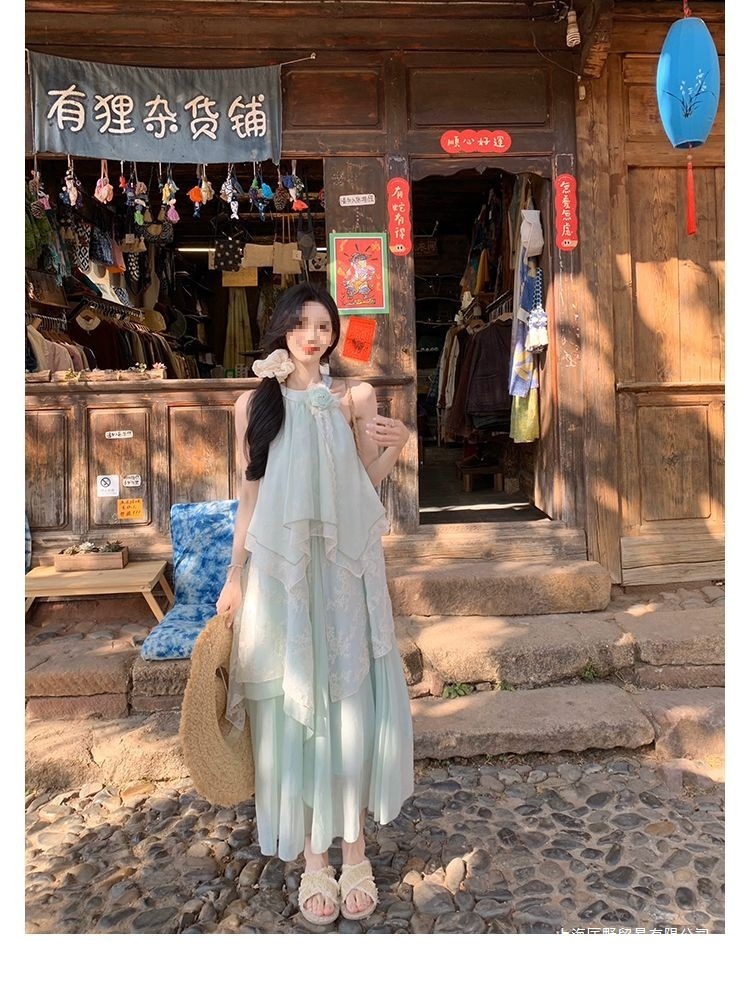 민소매 목 매달려 원피스 여름 기질 부드러운 슈퍼 요정 여름 여행 휴일 긴 치마스토어 가기