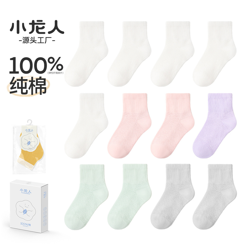 Xiaolongren 2025 순수 코튼 뼈없는 6-15 세 소년 및 어린이 얇은 양말 봄과 여름 소년 학생을위한 메쉬 양말스토어 가기