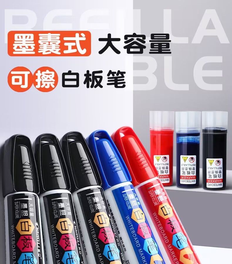 대용량 화이트 보드 펜 sac 블랙 워터 기반 지울 수있는 어린이는 잉크 교사 색상 빨간색과 파란색 사무실 문구를 변경할 수 있습니다.
