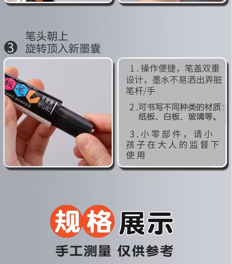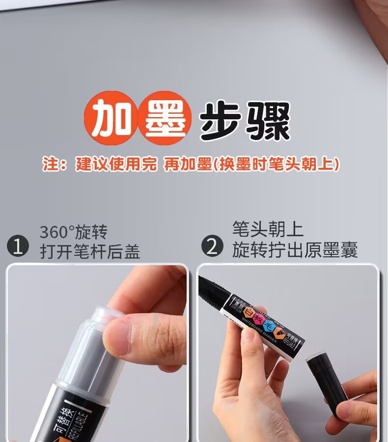 대용량 화이트 보드 펜 sac 블랙 워터 기반 지울 수있는 어린이는 잉크 교사 색상 빨간색과 파란색 사무실 문구를 변경할 수 있습니다.스토어 가기