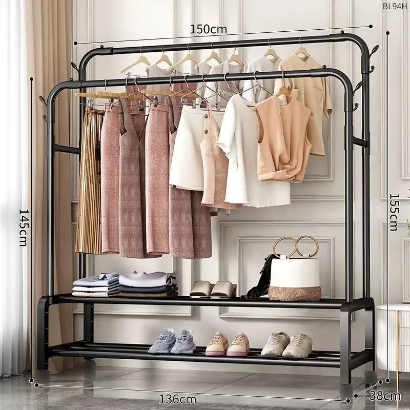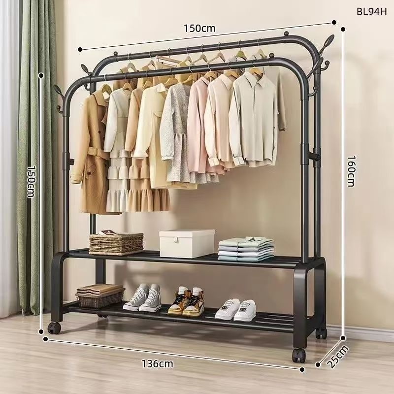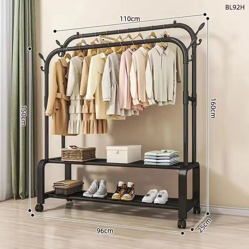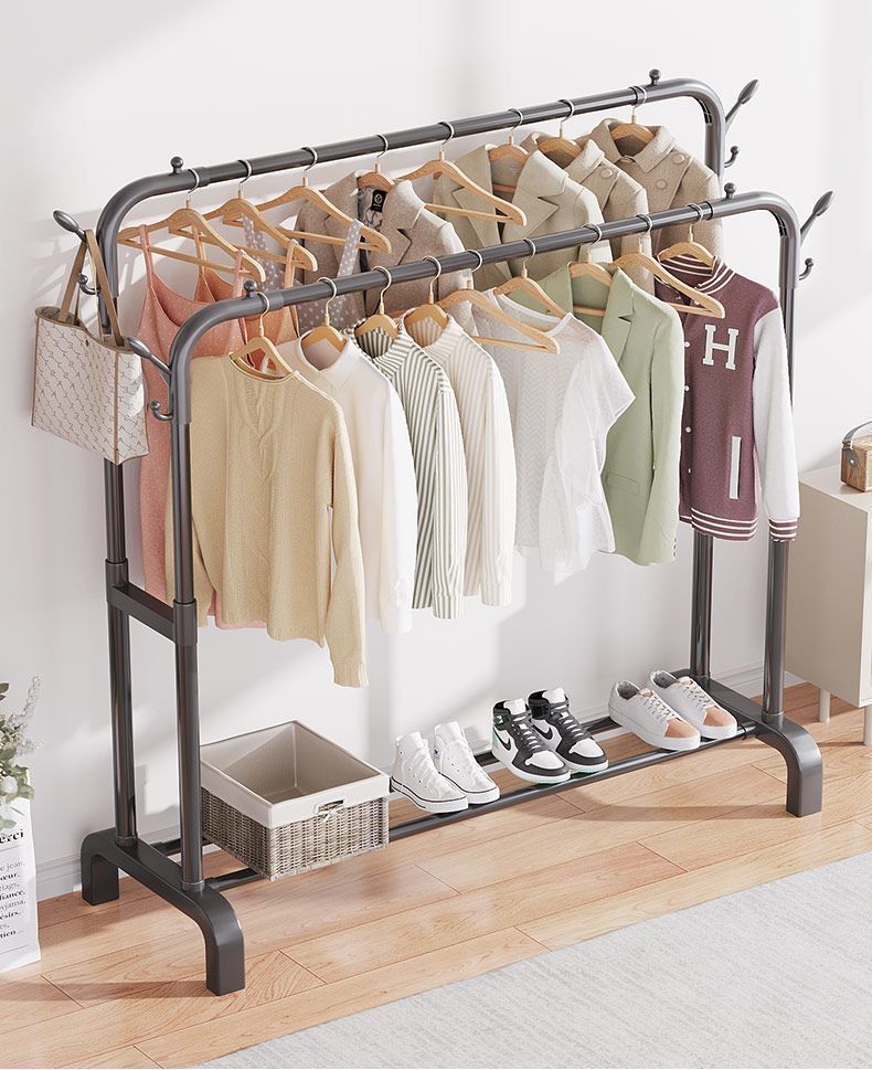 [공장 아울렛] 바닥 형 더블 폴 침실 실내 가정용 간단한 다기능 침실 휴대품 옷걸이스토어 가기