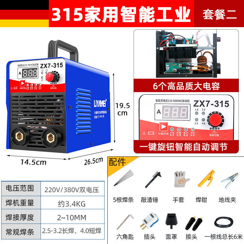 독일 리야 마그네슘 용접 기계 220v 가정용 미니 250 소형 315 이중 목적 DC 용접 기계 우표 직접 판매