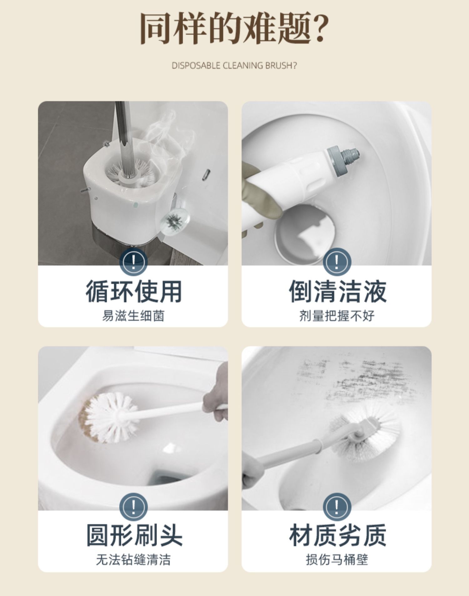 ✅가정용 일회용 화장실 브러쉬 탈법 교체 브러시 헤드 바닥 시트 배수 화장실 청소 벽 장착 화장실 브러시
