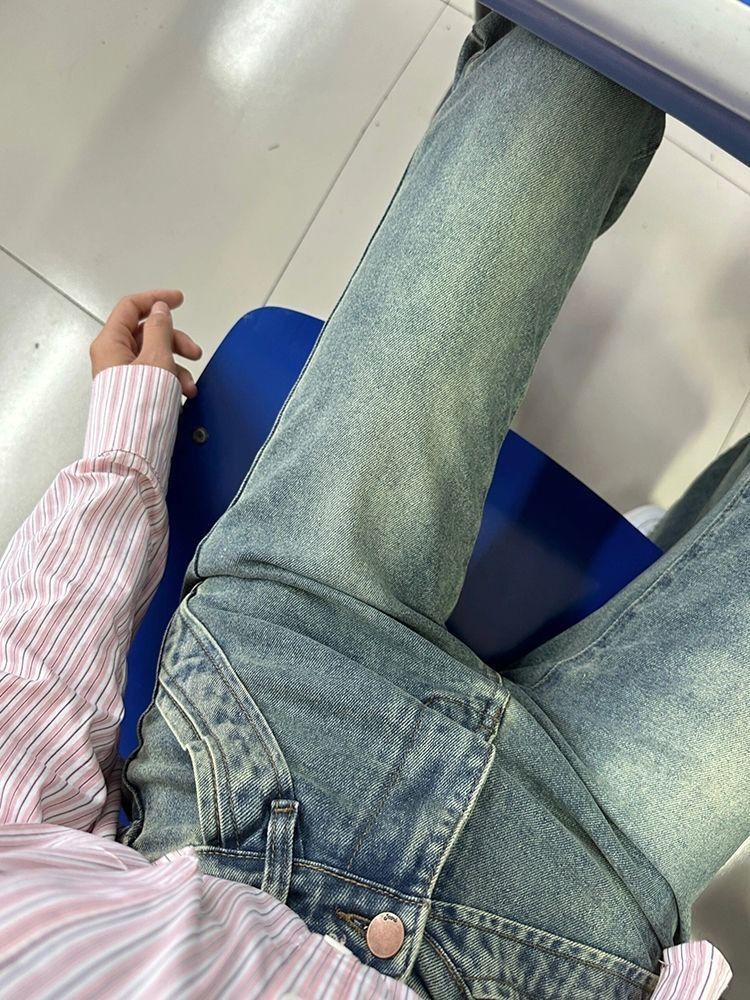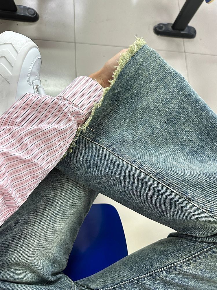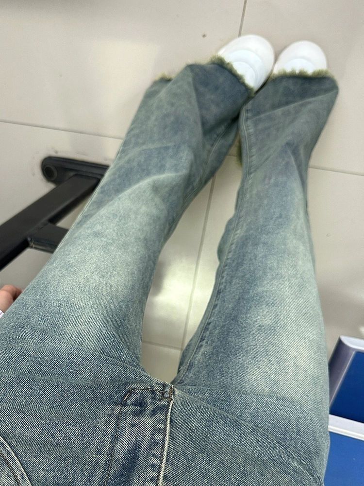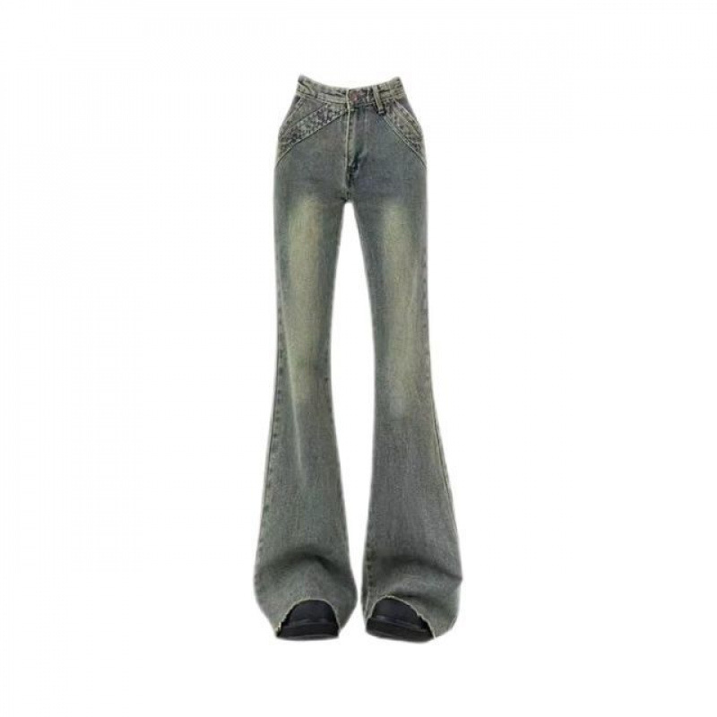 미국의 봄과 가을 새로운 높은 허리 플라 드 청바지 여성 디자인 센스 틈새 느슨한 레트로 러스트 슬리밍 걸프 바지
