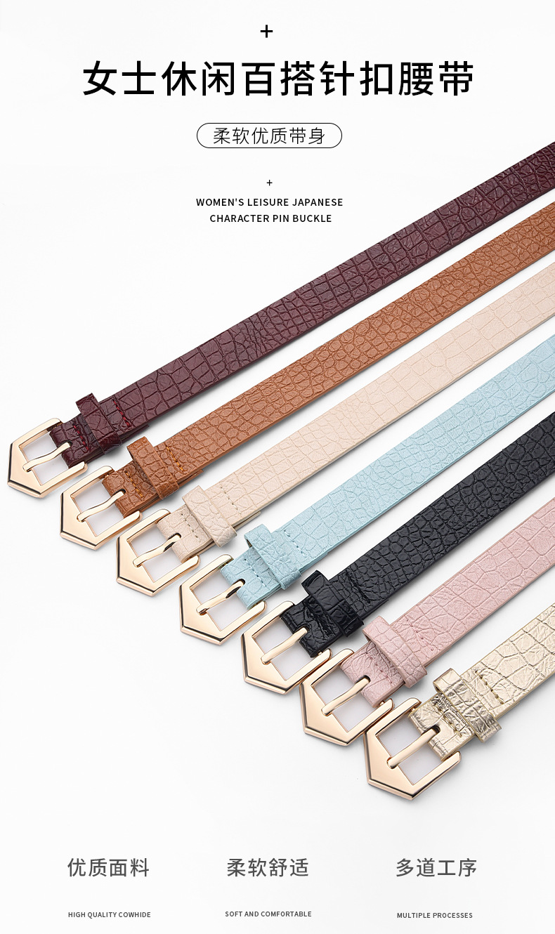 국경을 넘는 새로운 PU 숙녀 벨트 악어 패턴 빈티지 핀 버클 장식 벨트 청바지 재고 도매