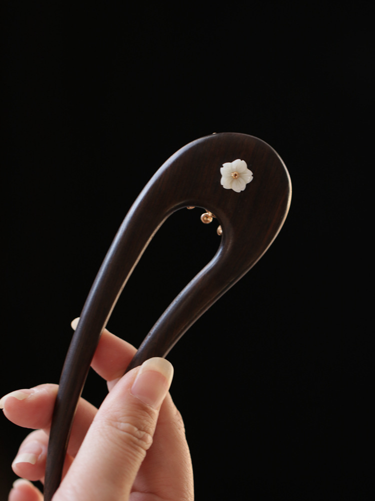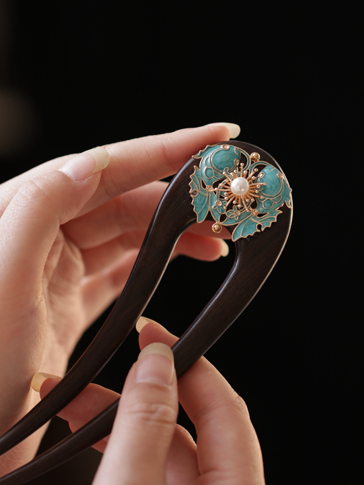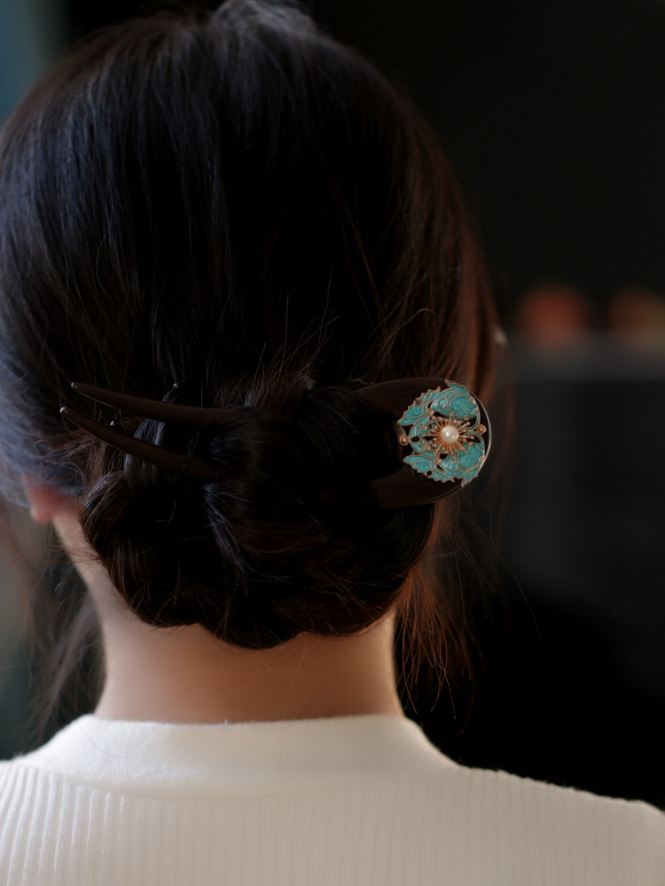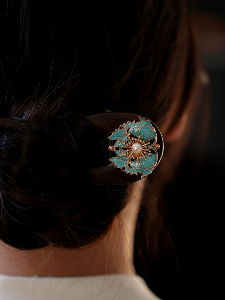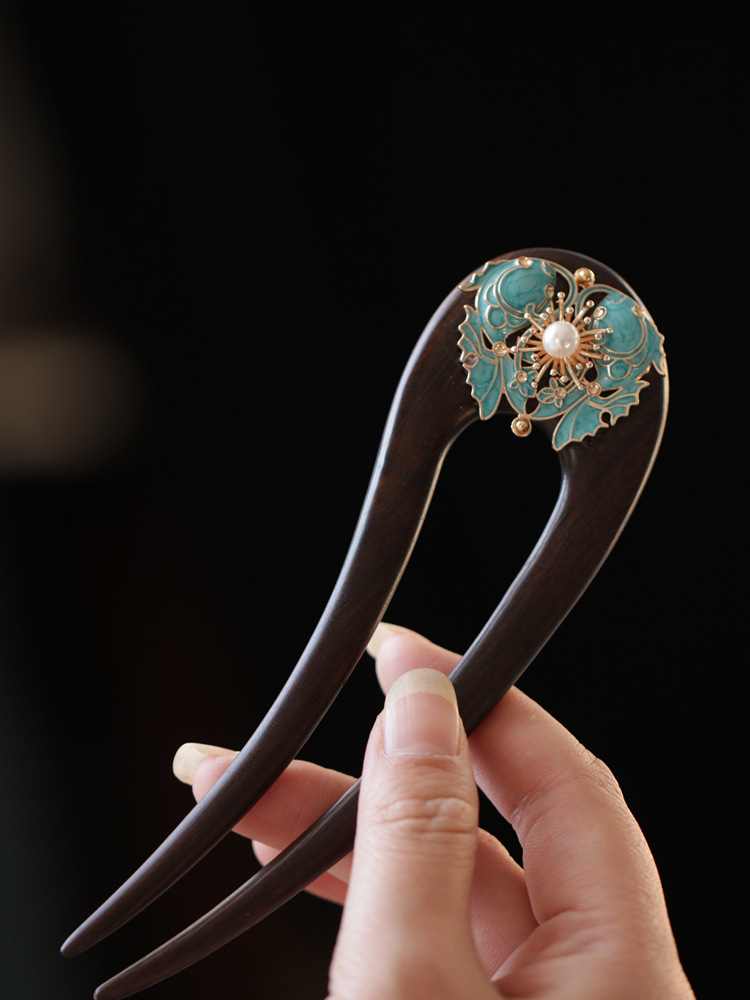 새로운 중국식 잉어 불타는 블루 더블 삽입 헤어핀 여성용 골동품 하이 엔드 나무 헤어핀 U 자형 헤어핀 청삼 액세서리