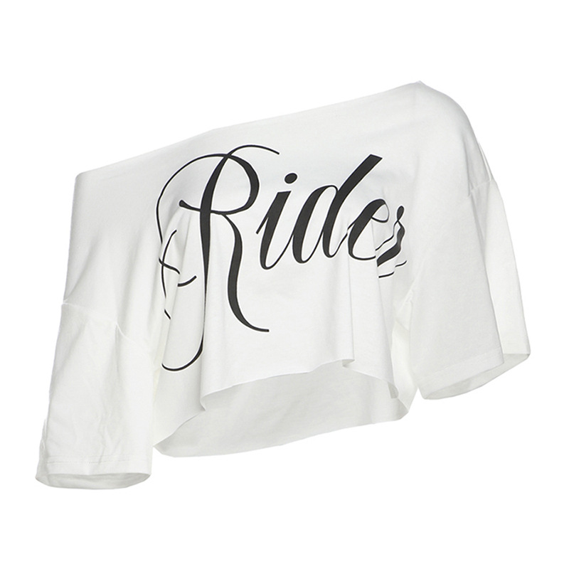 국경 간 유럽과 미국 스타일 2025 봄 새로운 여성의 섹시한 어깨 디자인 패션 인쇄 반팔 자른 탑