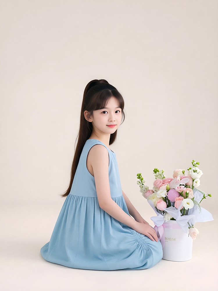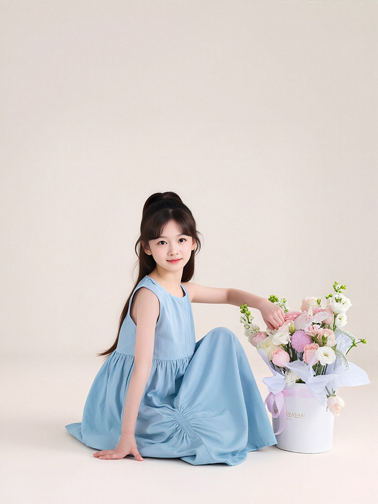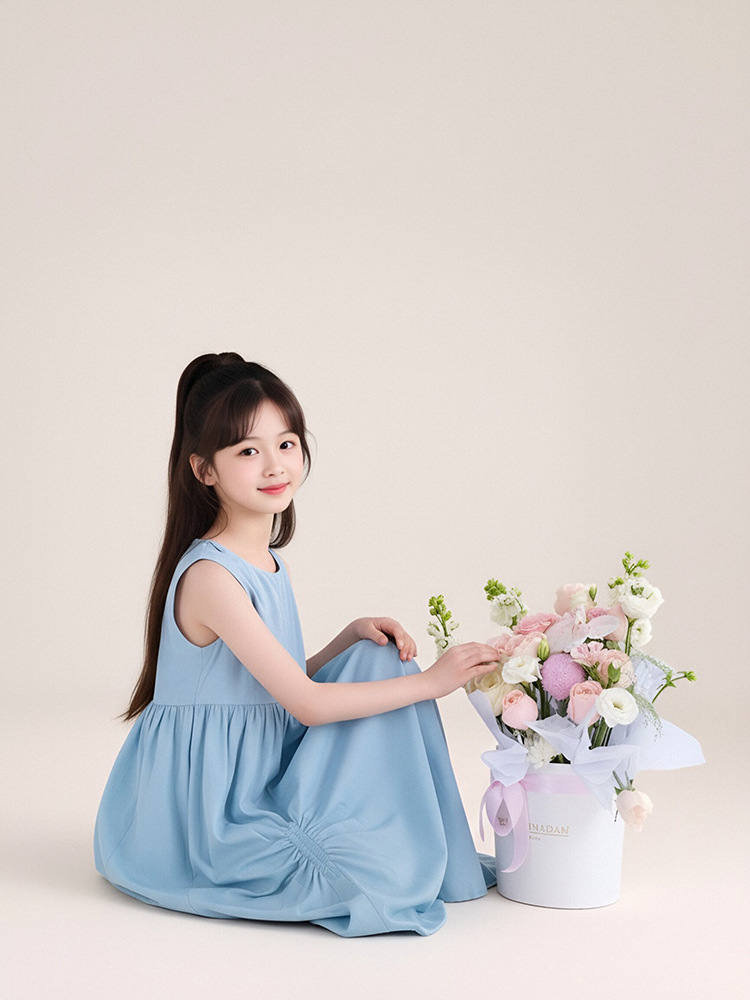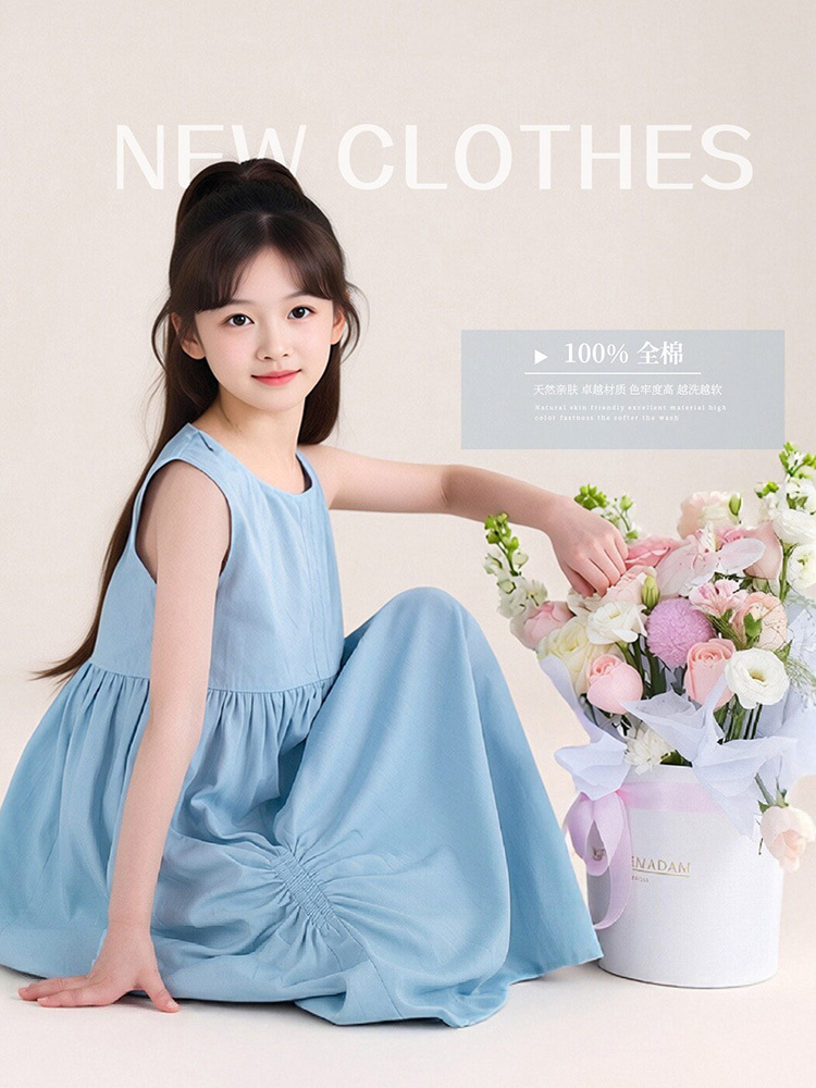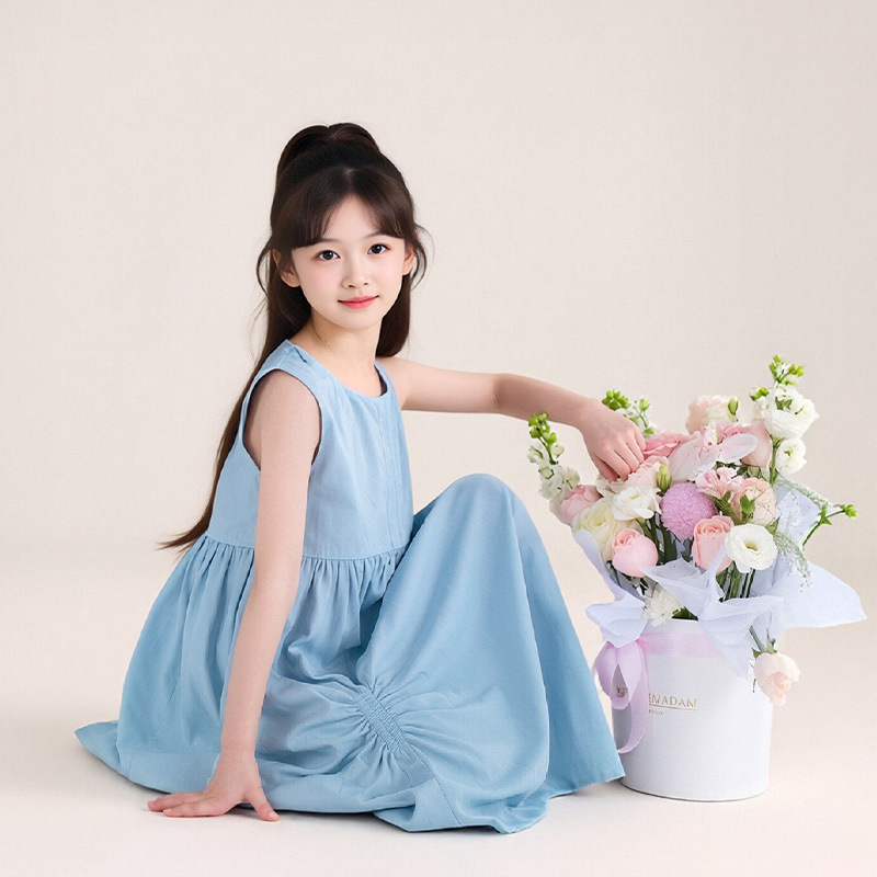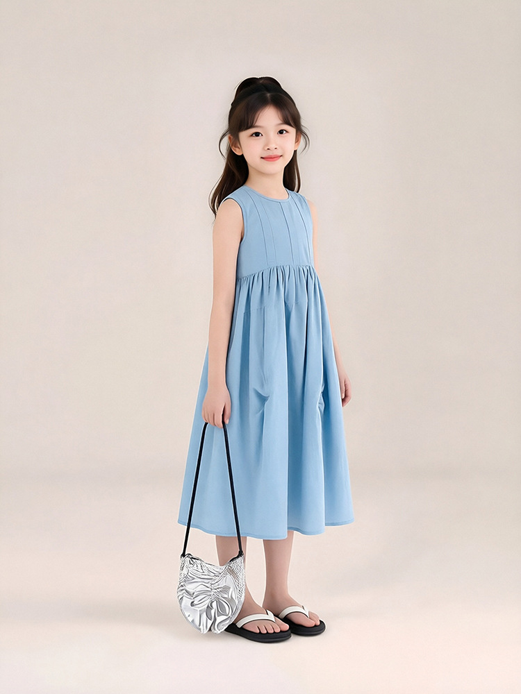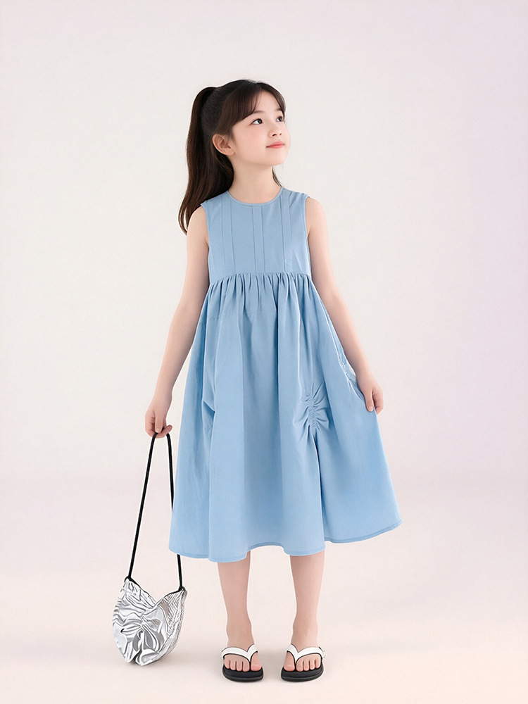 투투 리틀 엘리펀트 여아 원피스 2026 여름 신상 아일랜드 버블 순면 예술풍 민소매 조끼형 A라인 스커트