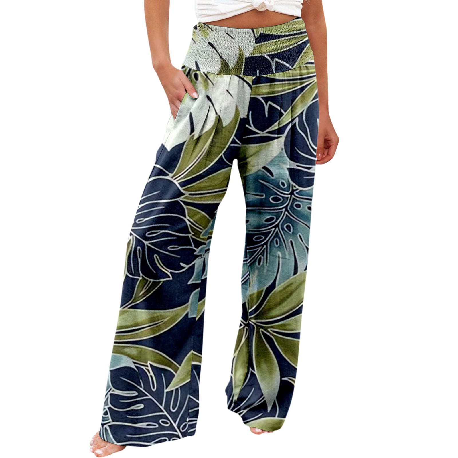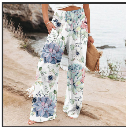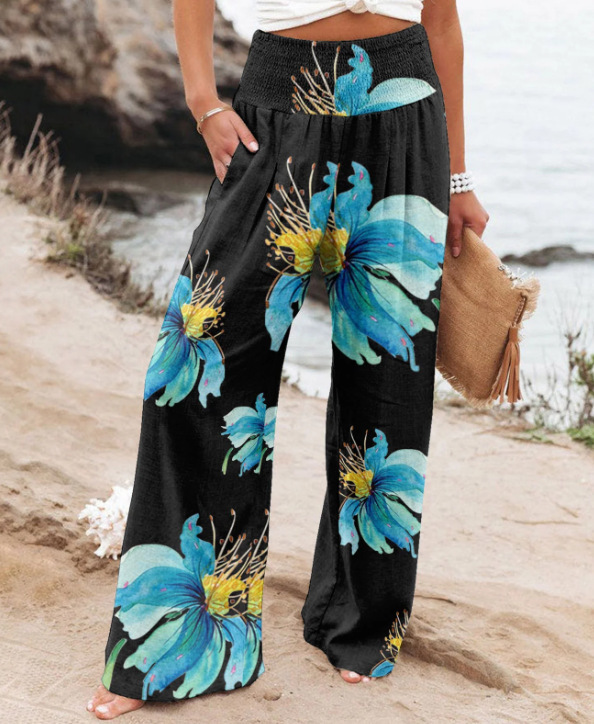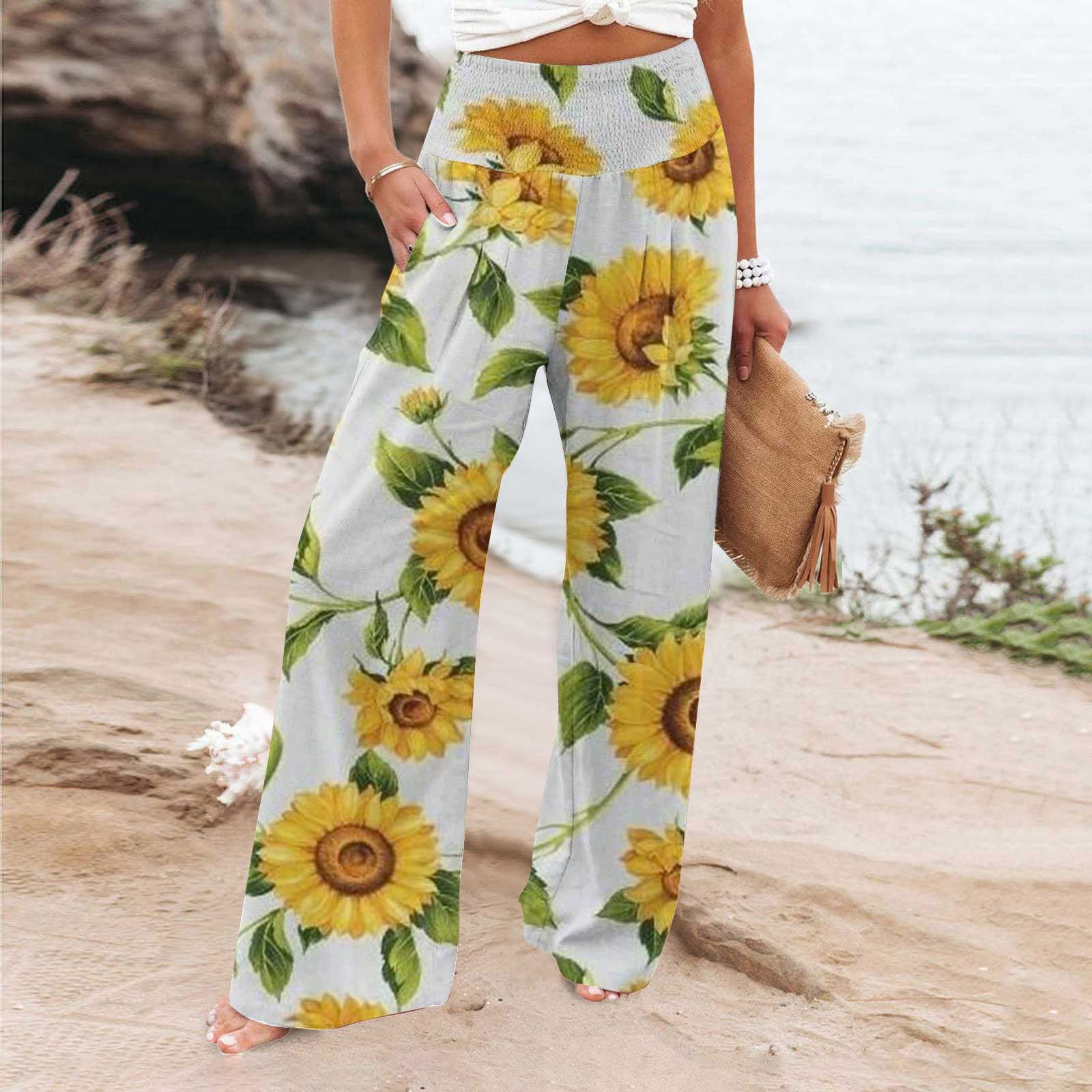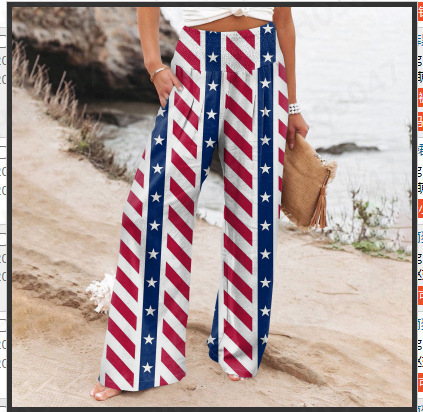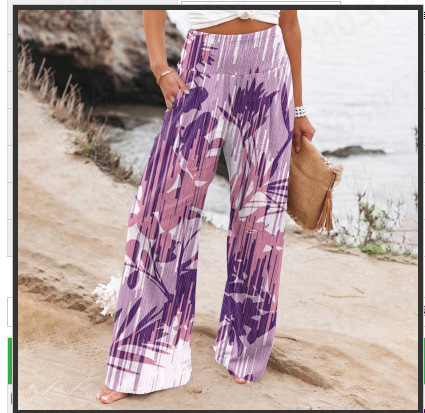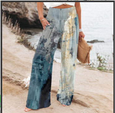 높은 허리 캐주얼 와이드 다리 바지 얇은 탄성 바지 국경 아마존 내부 여름 폭발 독립 역 디지털 인쇄스토어 가기