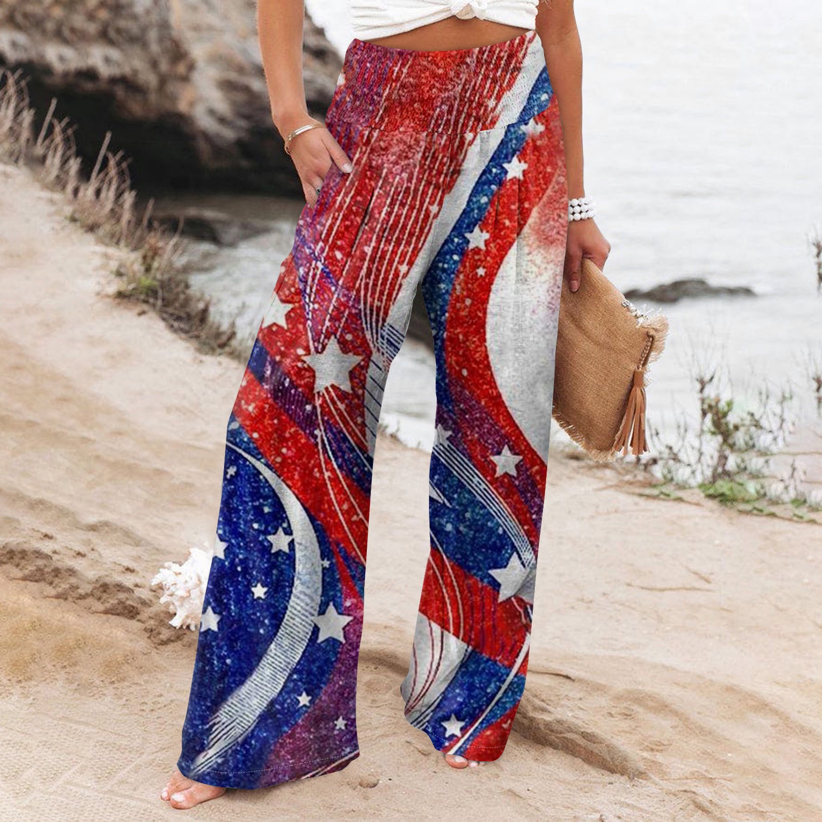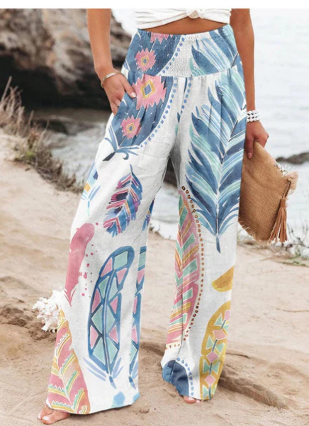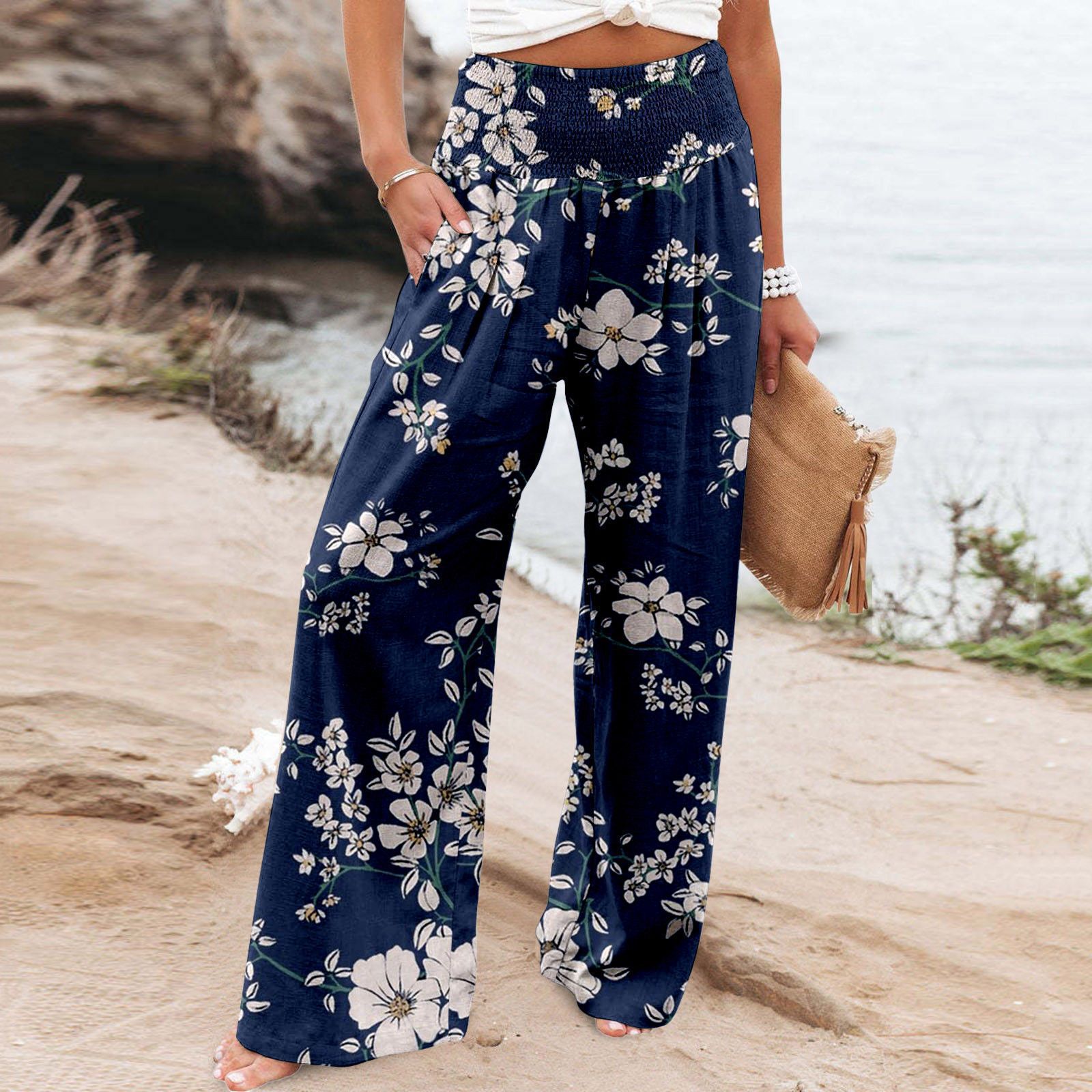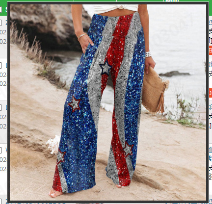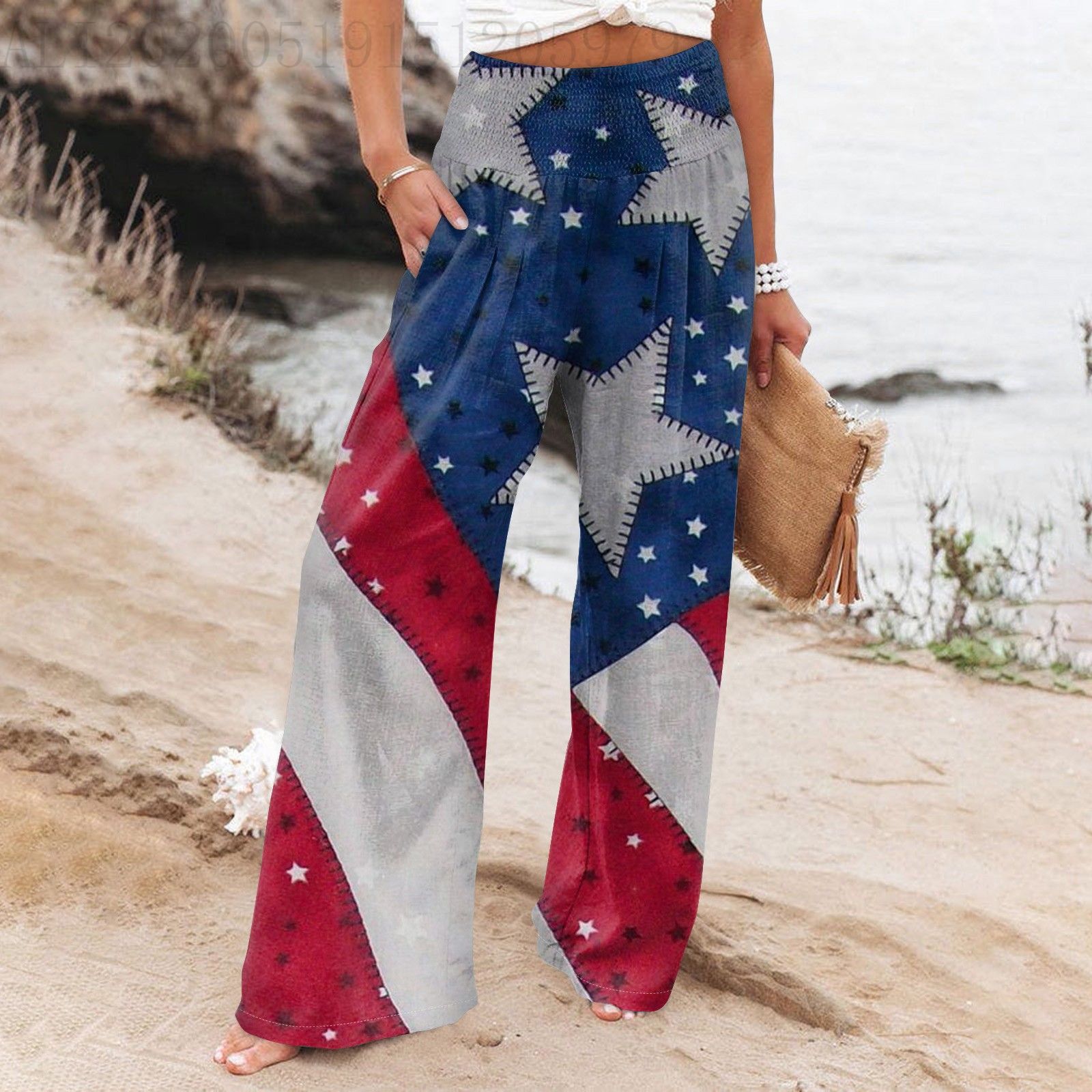 높은 허리 캐주얼 와이드 다리 바지 얇은 탄성 바지 국경 아마존 내부 여름 폭발 독립 역 디지털 인쇄스토어 가기